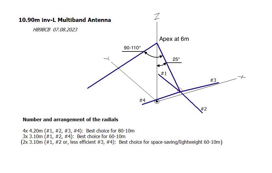 By the way, I have been thinking about updating the document published on HB9SOTA for some time because the 10.90 m multiband inv-L has become my standard portable antenna and it is also used by some other SOTA/WWFF/POTA enthusiasts.