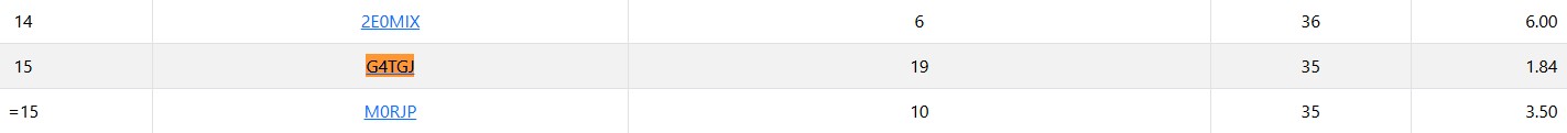 As an example, take the scores for Richard G4TGJ - well done OM for getting off (and no doubt a very cold off) to a great start in this challenge and operating on bands and modes that you have paid scant interest to before. That is the attraction of this Challenge, and I think you do right.