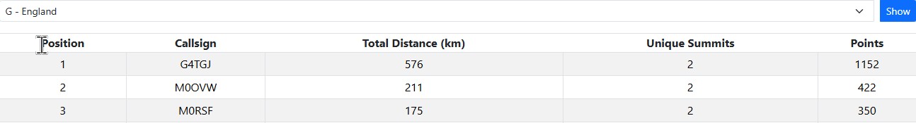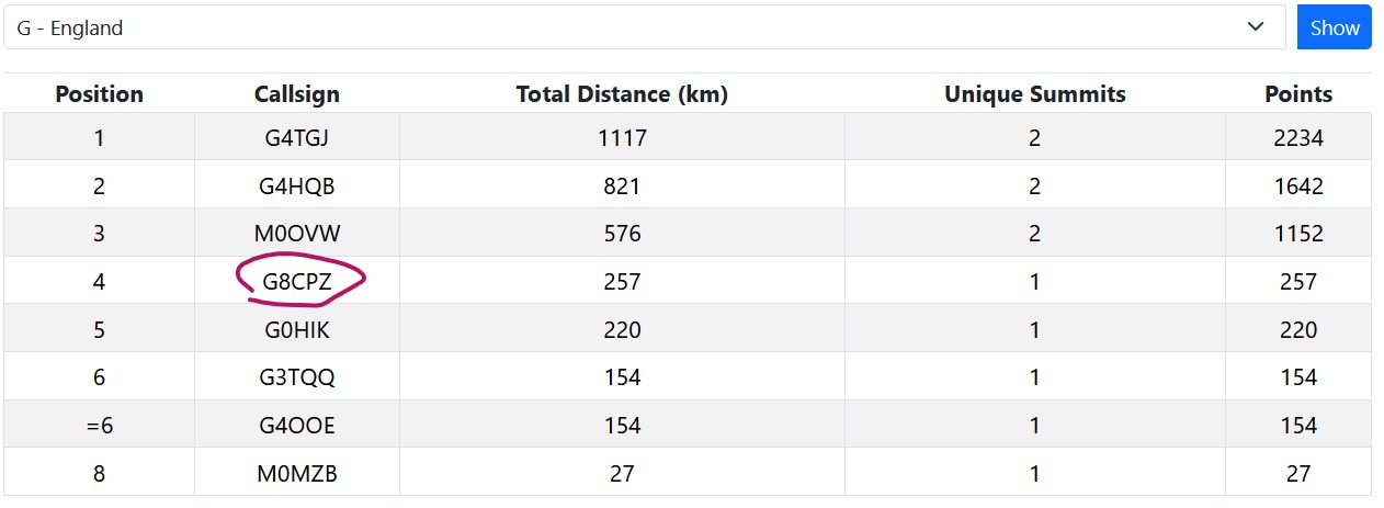 There’s a lot of activators out at the moment because of the novelty and that’s leading to summit to summit contacts, but I expect that will drop off eventually. Given this is based on distance you can’t compare the points from last year to this year.