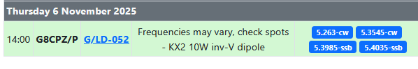 I wouldn’t normally make a splash on the reflector about an HF CW/SSB activation but I fancy doing 60m for a change, both CW and SSB. I get the impression that 60m activity - apart from ragchews - is actually declining a bit - but then I don’t sit there monitoring so I could be wrong.