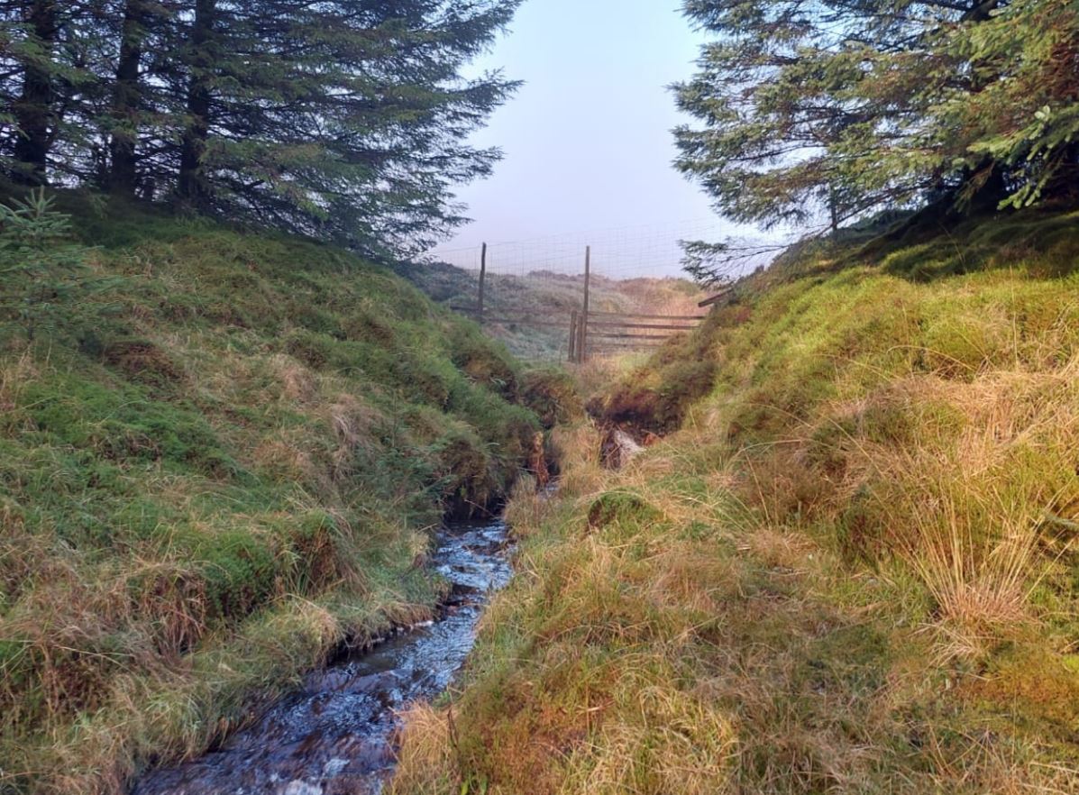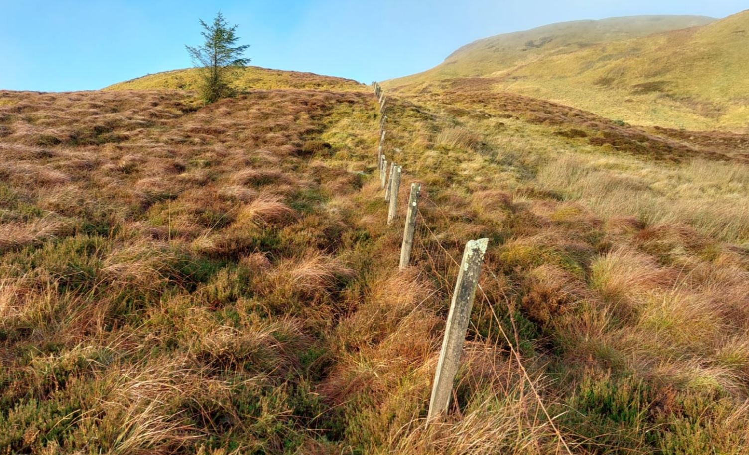 Above Photo-05-GM7STP-GMSS166.jpg : Leaving the forest behind, follow the fence line to the Lochain. Note: Cruach an Lochain is off to the left … so not yet in sight !