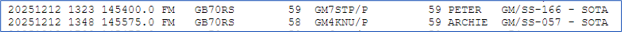 My 2nd QSO was with Chris @MM0UHR/P, another S2S, this one from GM/SS-059, with an R32, S59.
