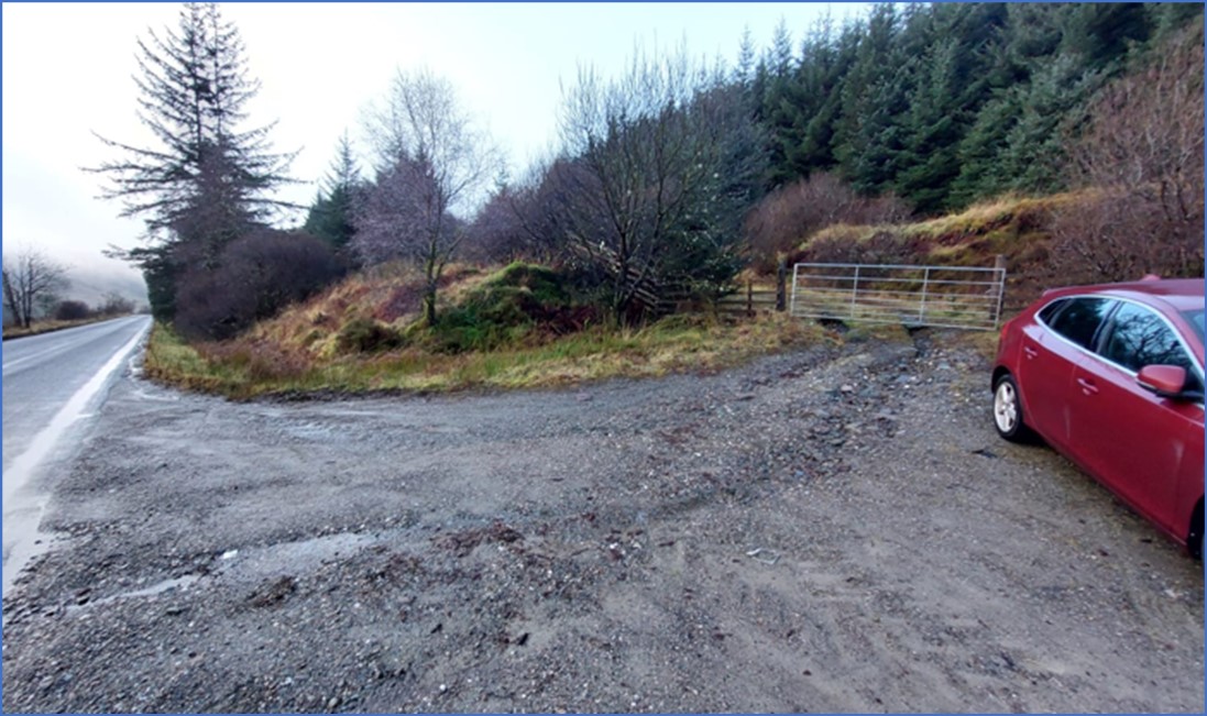 My starting point is the parking spot by the gate at the start of the track just off the A886.