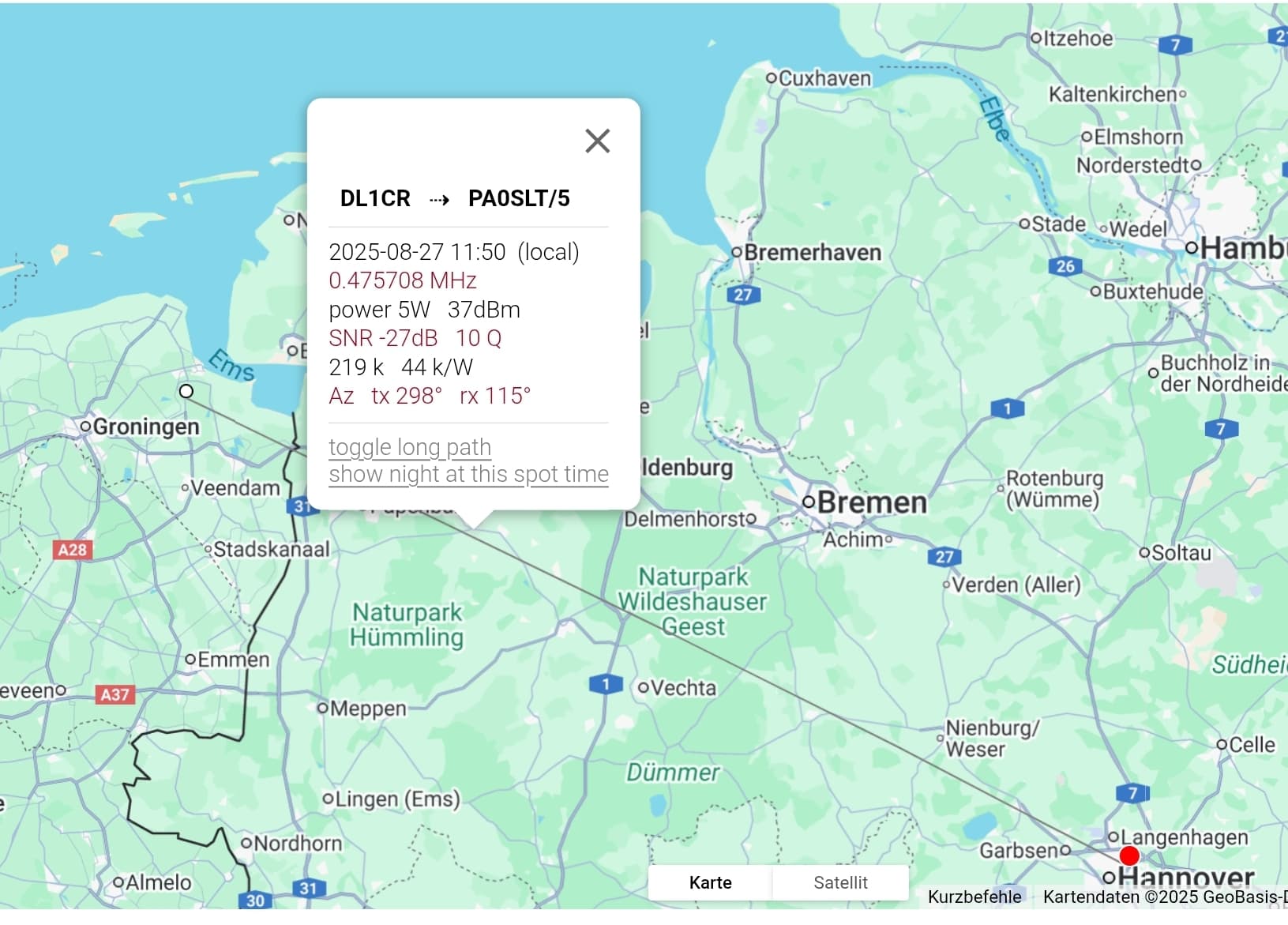Today, Uwe DK8OA and I had our second activation on 630m. The distance from Hammersteins Höhe to chaser Manfred DL6OBJ was 39km.