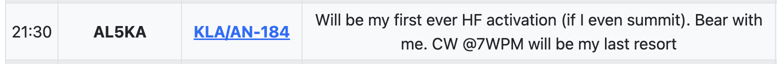 I made my first ever HF attempt. I activated SOTA on KLA/AN-184 (Rainbow Peak) yesterday. I used the KX2 w/ the 20m EFHW. I heard TONS of people yet no one heard me. I was on the summit for an hour and a half and was unable to get anyone to hear me.