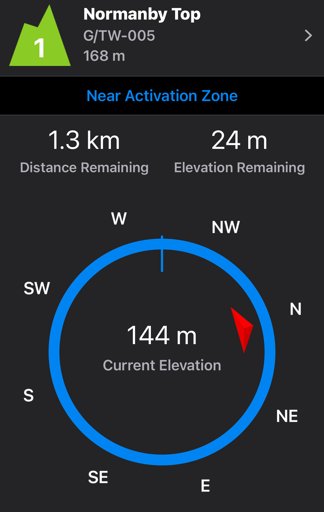 This activating spot is just within the AZ at 144m ASL - a tantalising 24m below the summit! But it is, by some distance, the best operating spot for this summit that I have experienced.