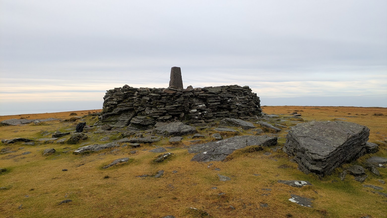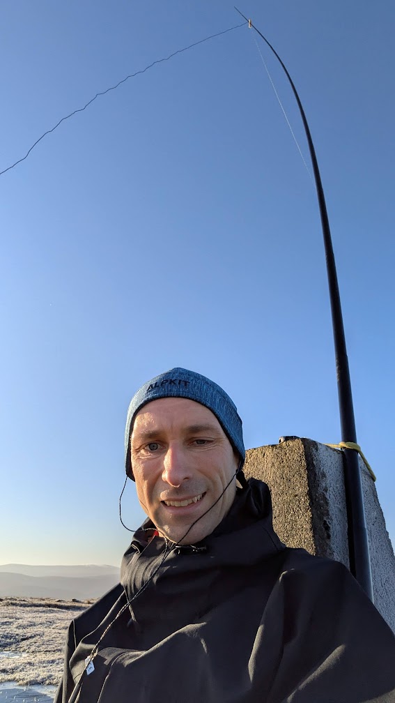 Thankfully the trig point sits on top of a small cairn, so attaching the 30m dipole centre to the top of the trig gave at least a couple of metres clearance from the ground. Not the world’s most efficient antenna, I’m sure, but it got 15 QSOs in the log - thank you, all, and sorry if my signal was a bit ropey.