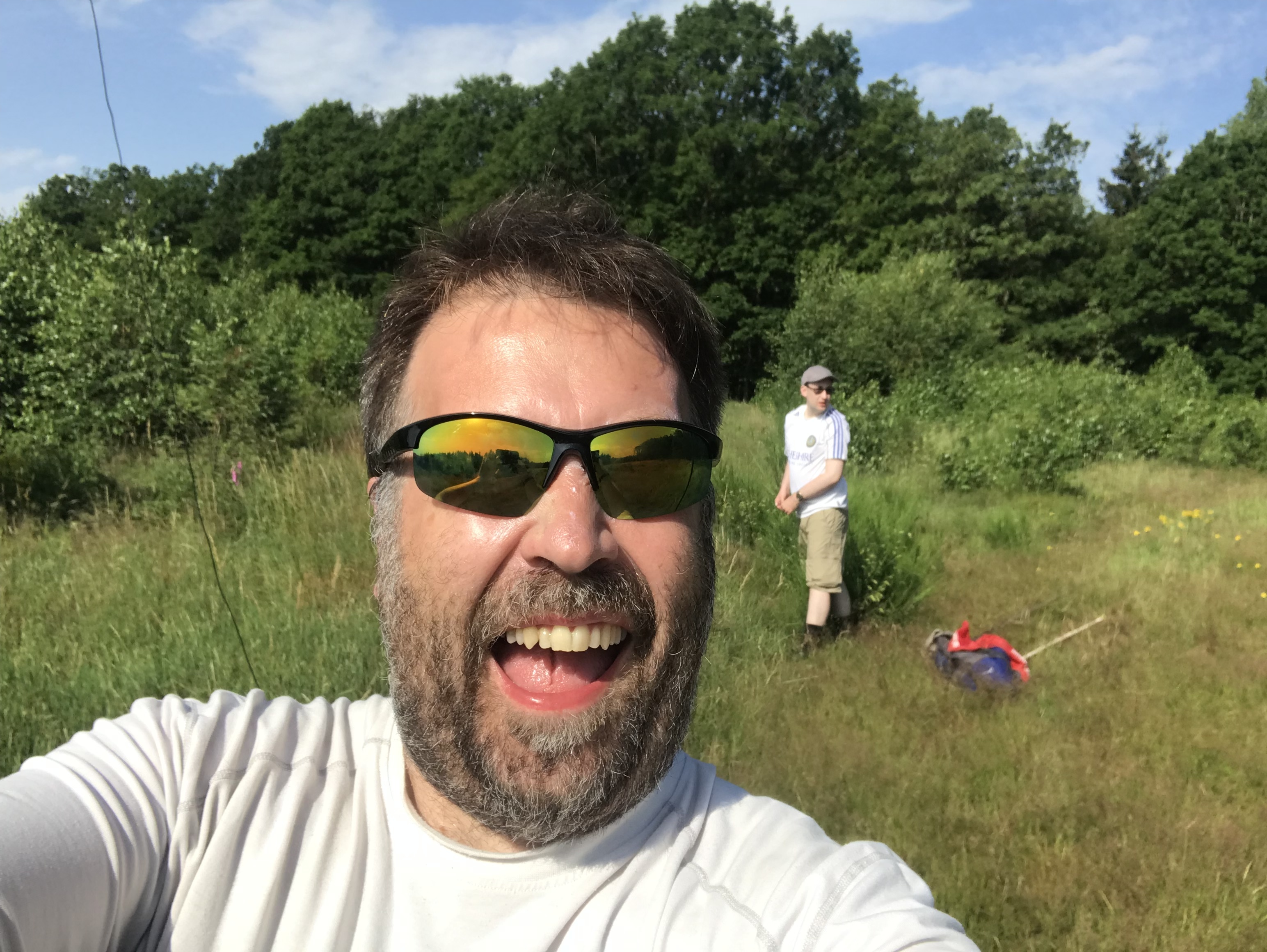 I just about squeezed the 30m GP into the small summit area. The band was pretty dead but I managed six QSOs on FT8 and double figures on CW (and counting - I write this report from the summit with the activation still in progress!)