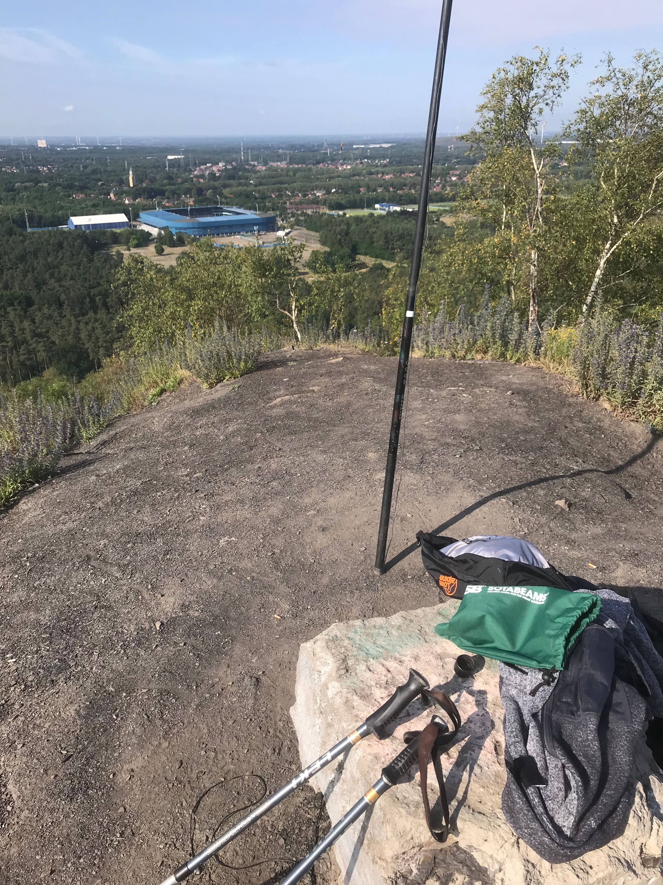 It was a flattish path until the now naturalised coal tip. Then it was very steep, and potentially slippery on the coal dust. The summit area was very small but I was able to throw the ends of the dipole legs over a couple of trees.