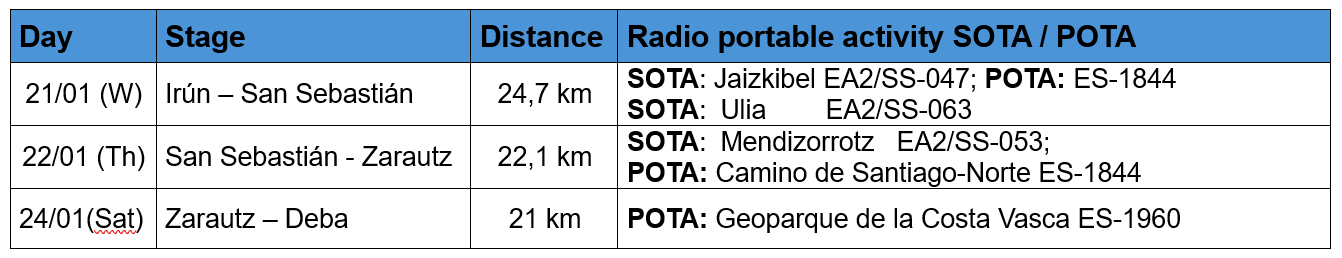 If the weather permits, I can do three very interesting days of the Camino de Santiago, which include three SOTA. Although the spirit of pilgrimage will not be as complete as I would like, since I will be staying overnight in San Sebastián every day, I will go to the starting point from my accommodation.