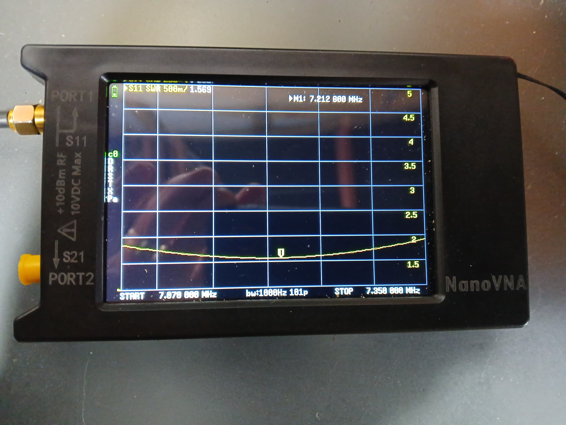 I set the NanoVNA for 7.070 Megs to 7.350 Megs and the result was in the range of 1.6 to 1.9 SWR. Now this has been achieved by shortening the whip by just one section. The radials are stock standard and just thrown out in 4 directions. While this result is sufficient for most purposes I am sure that I could get it down further with a bit of adjustments to the radials.