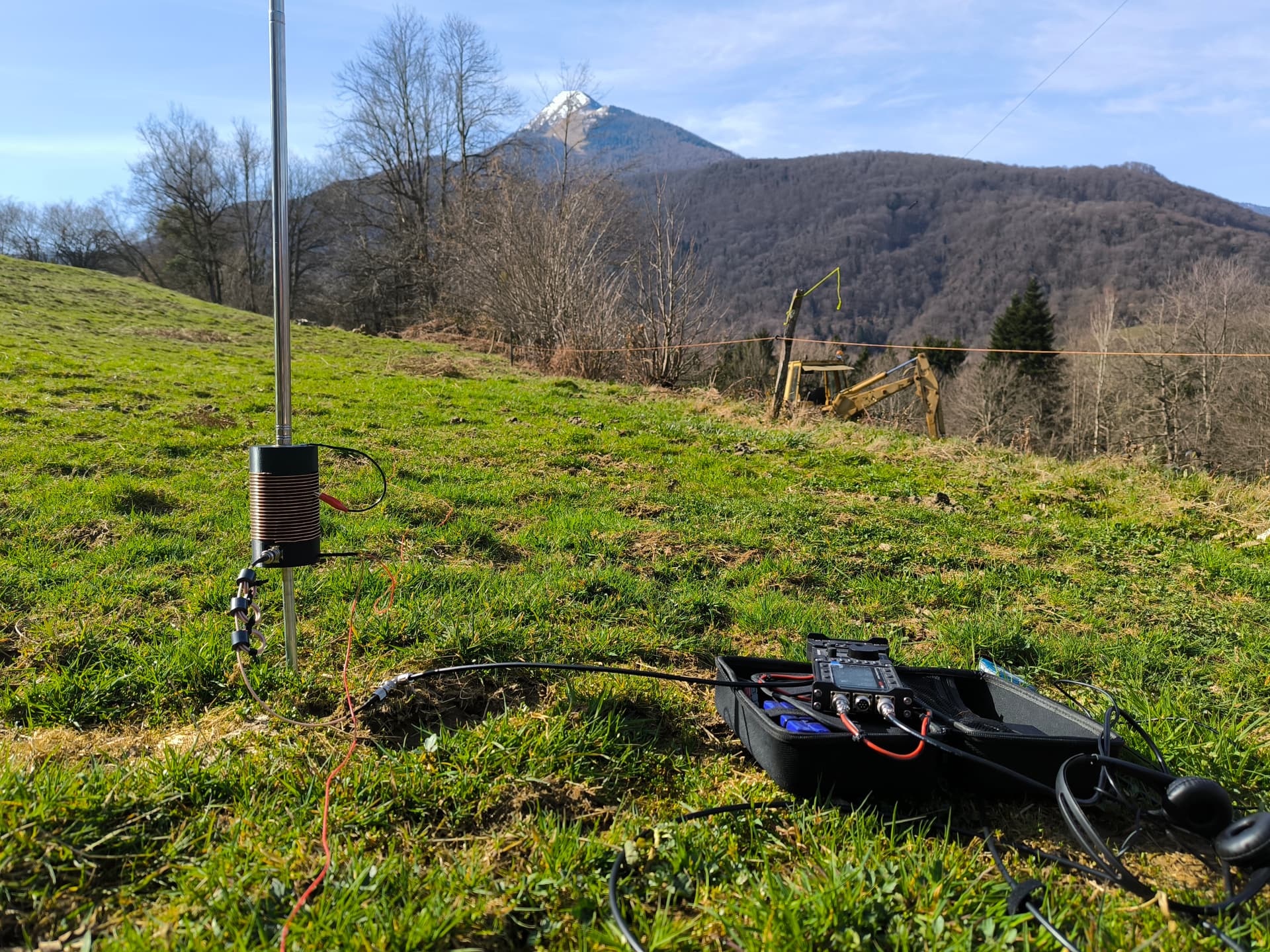 Audio comparison on 40m, EFHW (20m long, 6m mast) vs vertical whip + coil. WebSDR is located at 250 km.