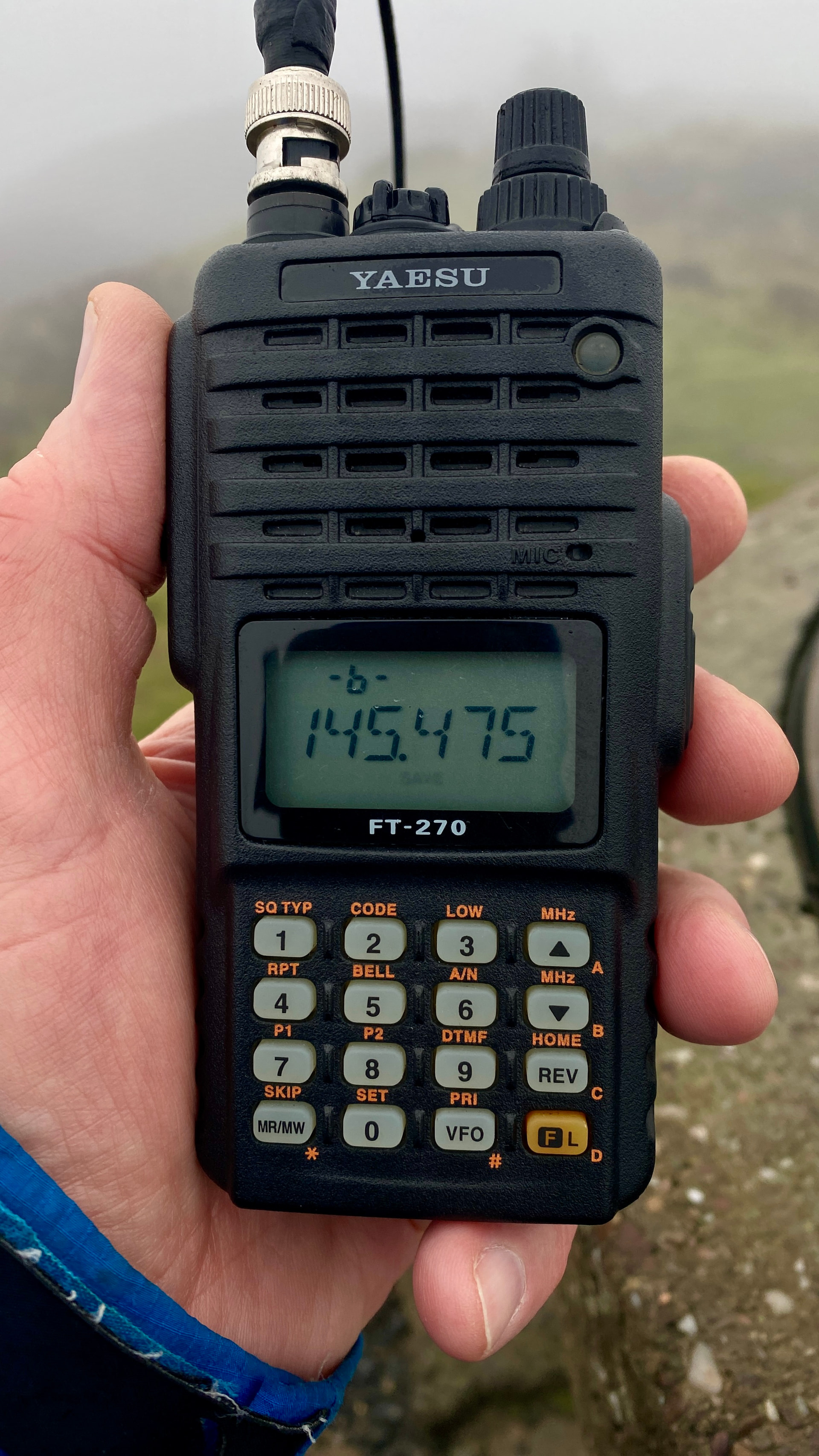 A quick walk back down and on to G/WB-002 Brown Clee Hill. I tend to approach from the West, always with fingers crossed that no one has beaten me to the limited parking near the gate. Fortunately not - though it was clear the farmer had been busy. Recent rain had turned the path distinctly muddy, making the climb a little more agricultural than intended. Pushing on to the summit, the mist thickened further. I’d had interference problems here before from the nearby communications tower, so I’d come prepared with what I think is my best-looking handheld, the FT270 - a radio that’s actually been on my list to sell. After its performance today, it may be getting a reprieve.