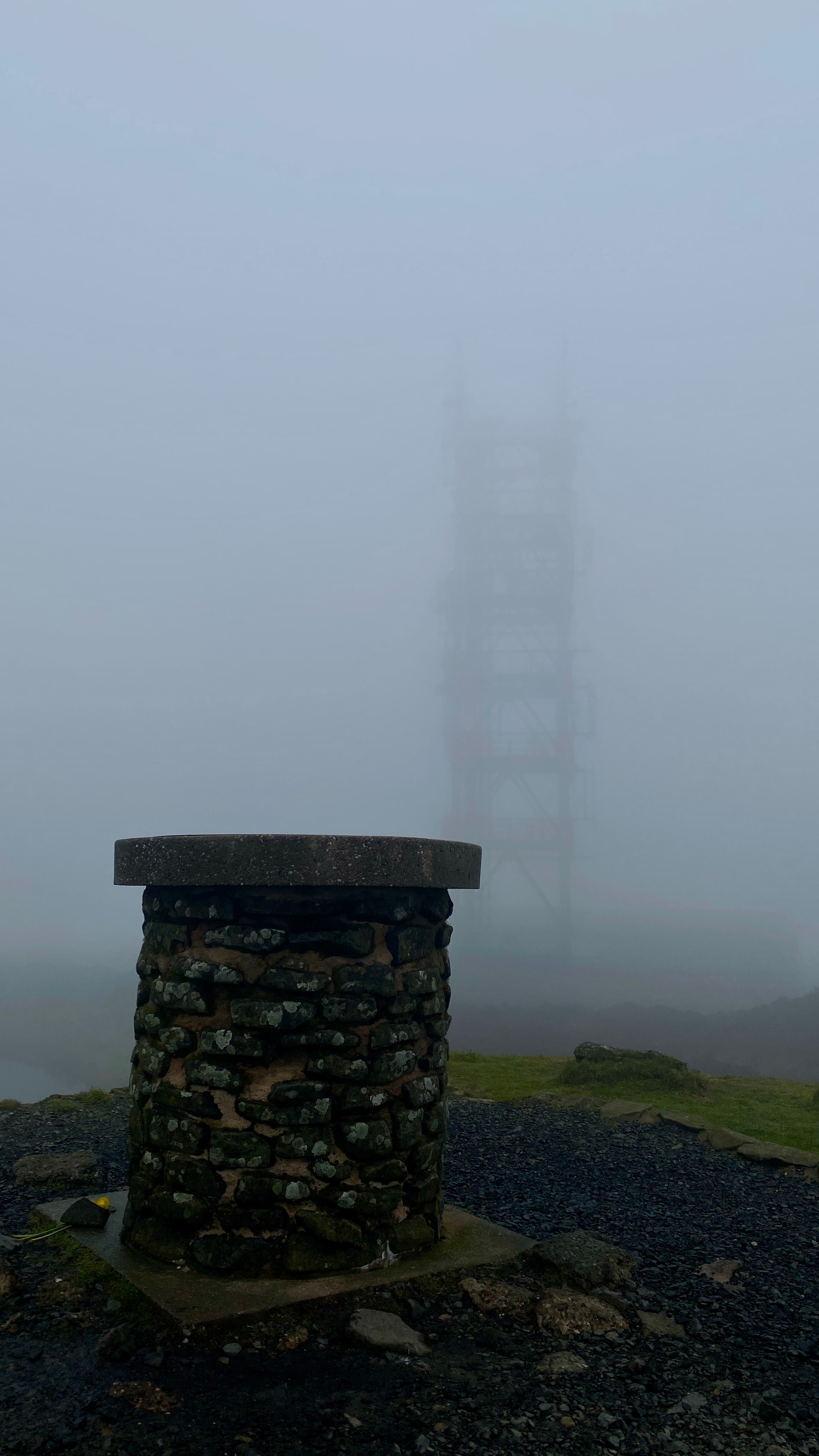 Arriving from the South after a two-hour forty-five minute drive, G/WB-004 Titterstone Clee Hill was my first stop. As I got closer to the parking area, it was already clear that visibility at the top was anything but. The hill has a fascinating history stretching back to the Bronze Age - a large cairn, an Iron Age hill fort, and centuries of mining and quarrying. The radar stations are normally a prominent landmark, but the mist had swallowed them whole. I only spotted the trig at the very last moment, which became my operating spot for thirteen contacts in fifteen minutes.