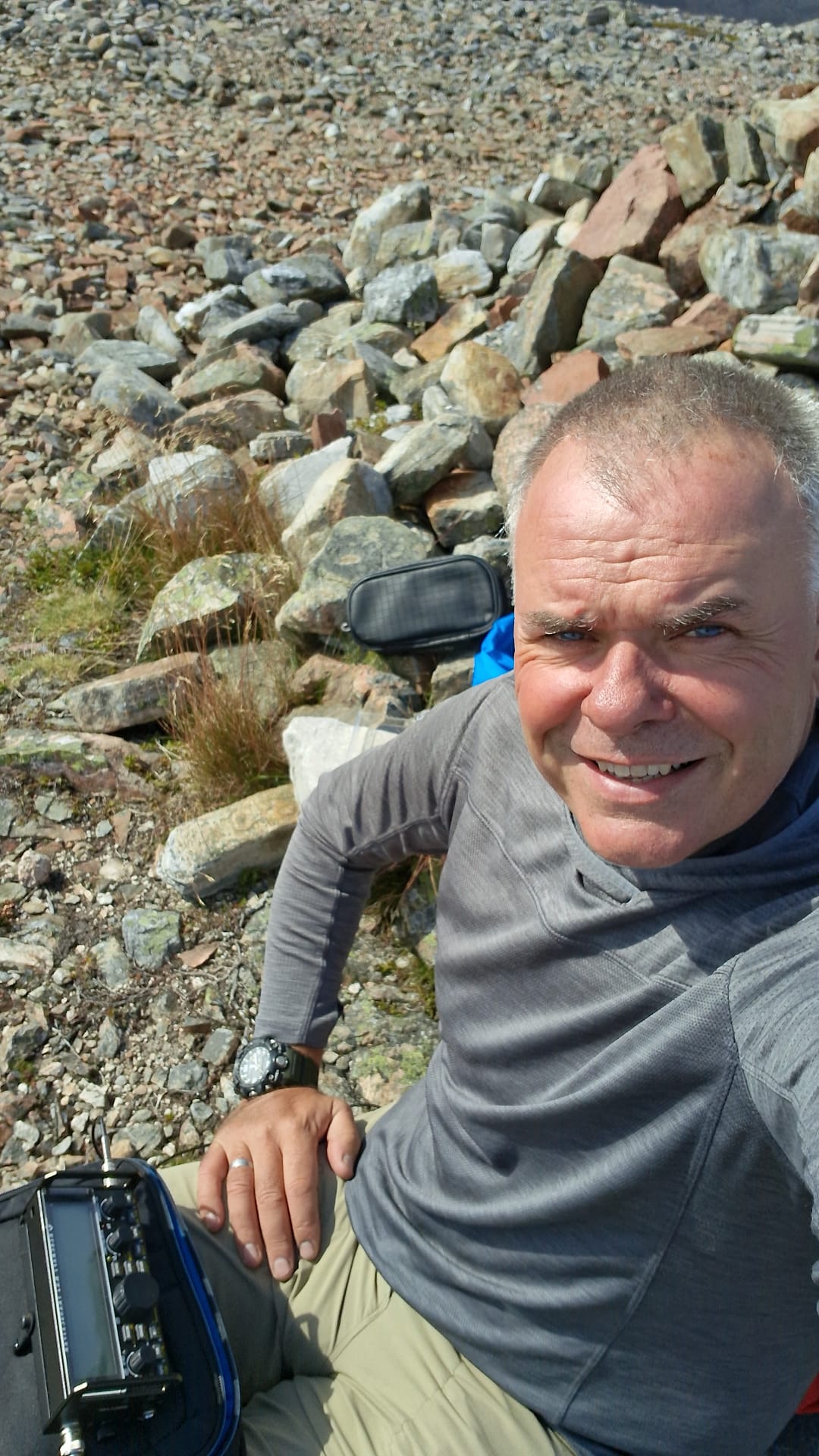 With he pole plonked in the small cairn and the hot end of the EFHW stretched towards me, there was just enough coax to allow me to shelter behind the SW side of the cairn. With HF set up, I got out the 2m handie. I hadn’t bothered carrying a gain antenna, after all Alex was only 8km north. With the S2S in the bag, I managed a weak contact with Simon @GM4JXP and then turned my attention to HF.