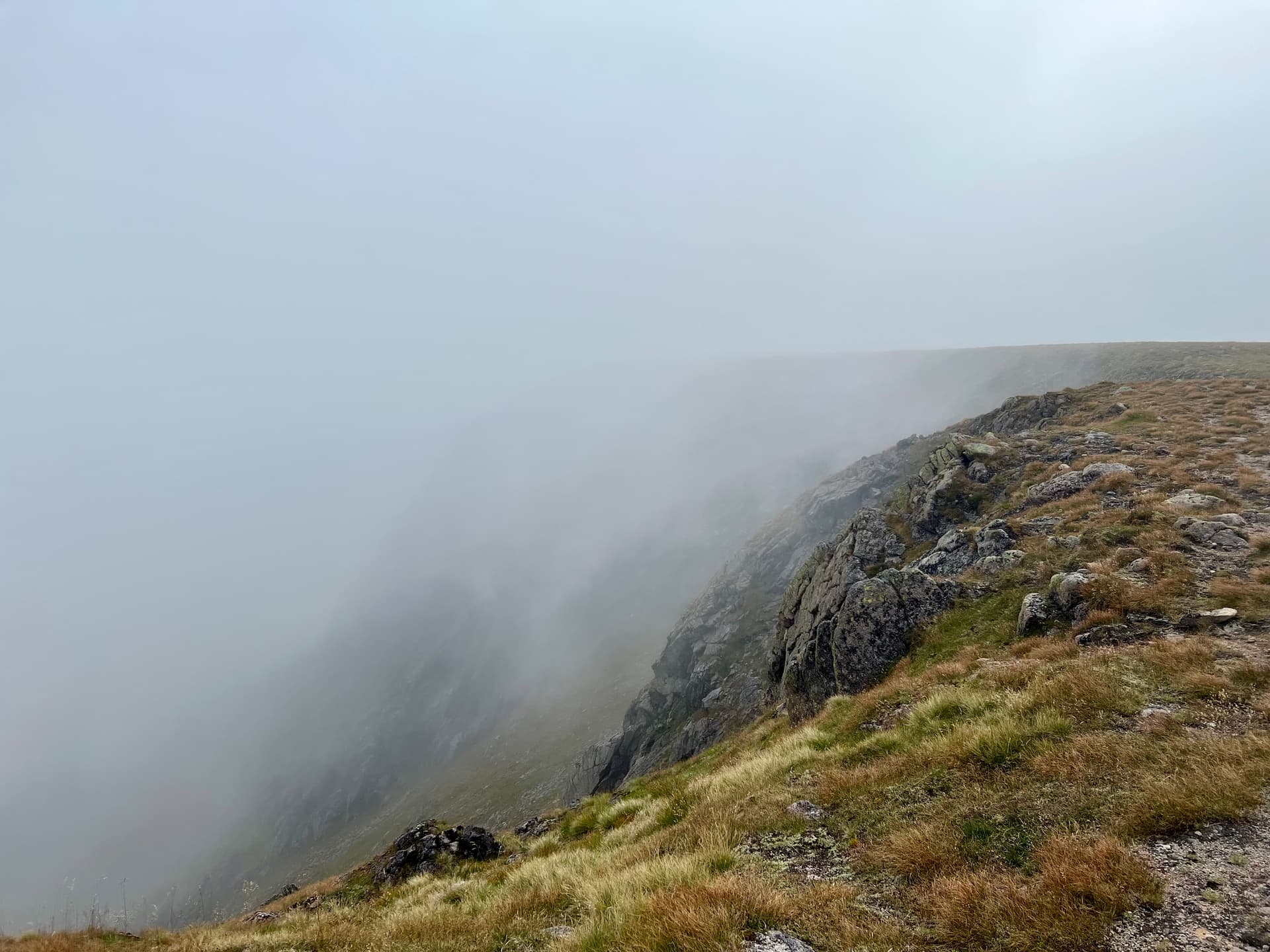 Occasionally, the cloud would lift more and I was hopeful but it didn’t shift. It wasn’t until I was heading towards the South Top, by the Bloodhound buttress, adjacent to the Polypody Groove, and overlooking the Dubh Lochan, did the sun start to reappear.