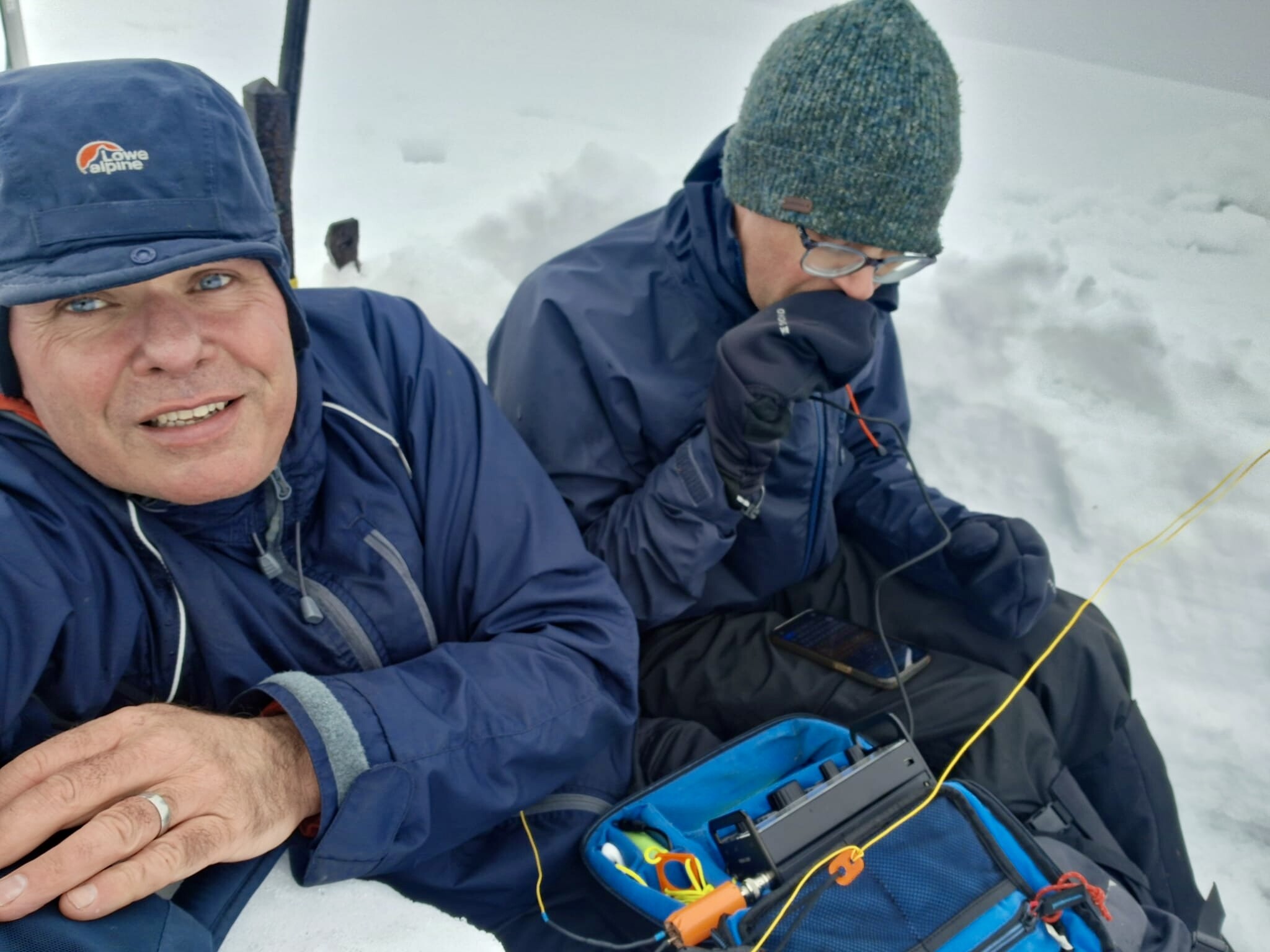 We had a great run on 40m, hearing so many familiar voices come back to us with signal reports and congratulations. We passed the mic back and forth, managing to listen together for the callsigns in the howling wind. Here’s a video Fraser took: