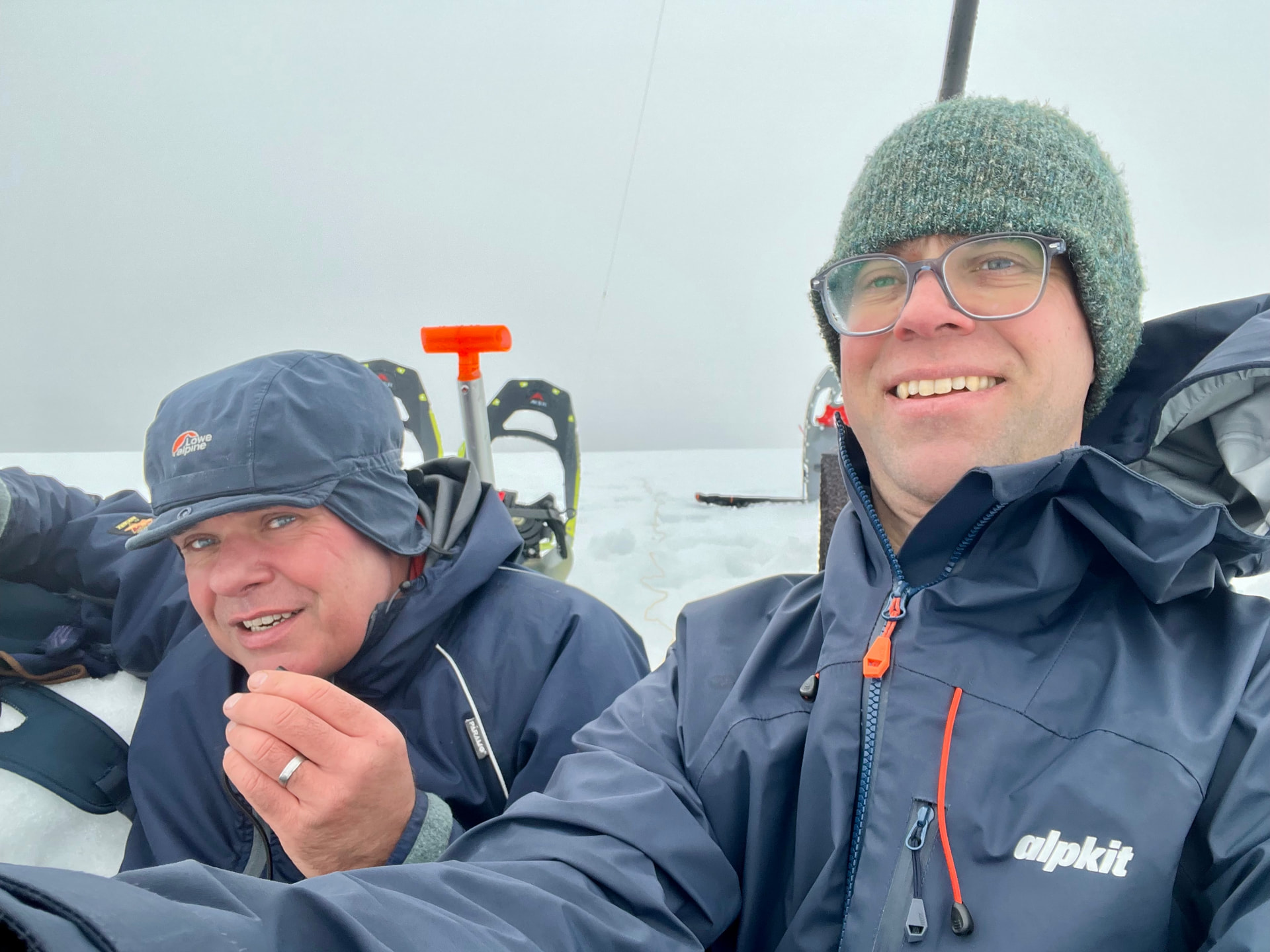 The shelter worked very well, as we were in there half an hour on 40m, and only shivering slightly. Clearly in need of something to celebrate and warm us up.