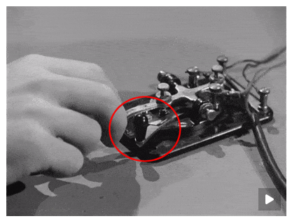 As you can see in the image, the metal strip is under the spring-clip. As such, although the operator is ‘banging away’ on the key, it would seem he is actually sending nothing at all as the key is in the permanently ‘ON’ state …