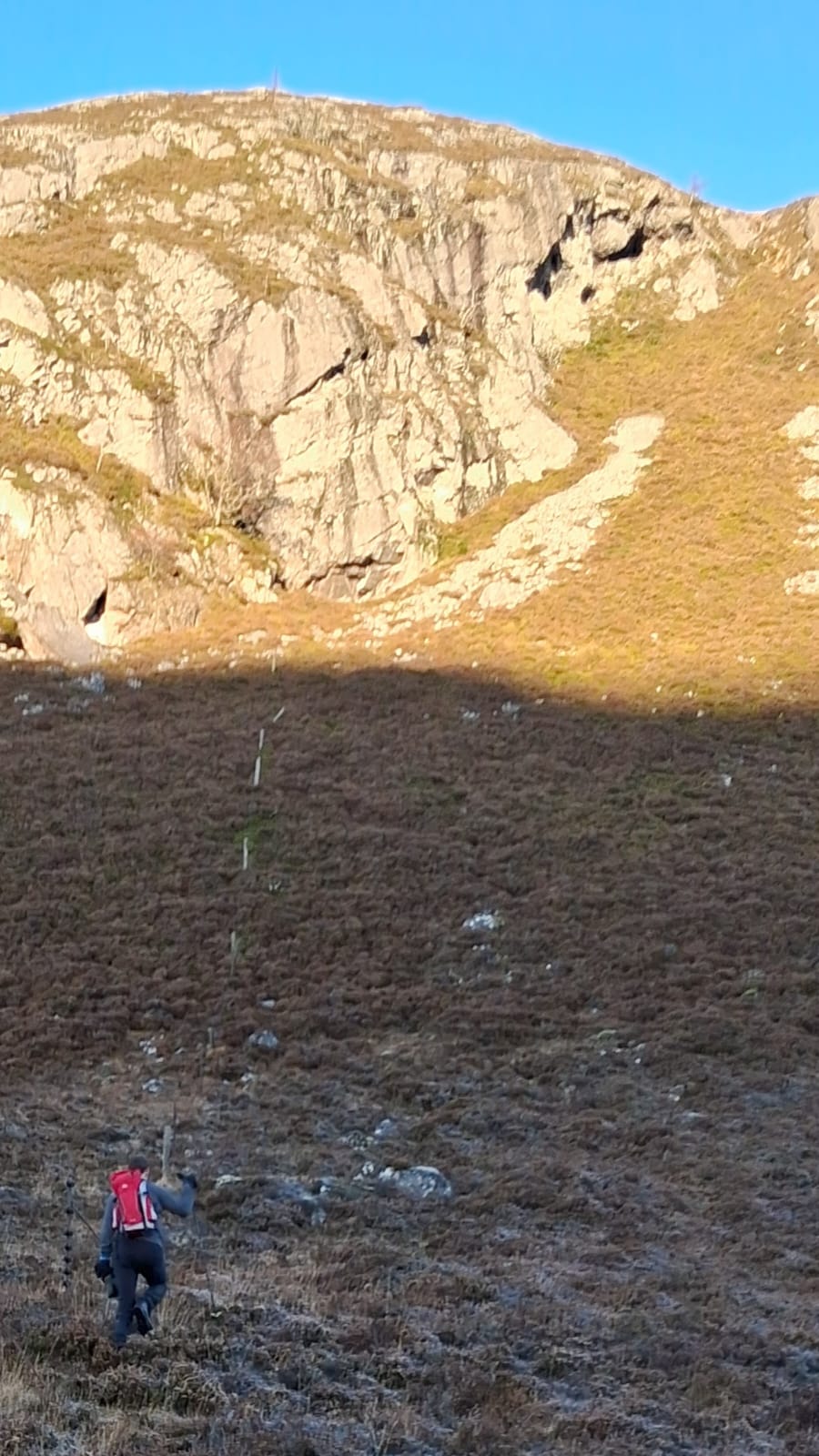 Quite the slog to get to the top, but still lovely views to make it worthwhile (again for some). Just a quick activation on 40m and 15m for me, and Fraser tried 20m and 2m but nothing on VHF this time. The sun was getting low and the air getting chillier, so it time to head back to the landy over a fair bittie of heather before we found the track to take us back.
