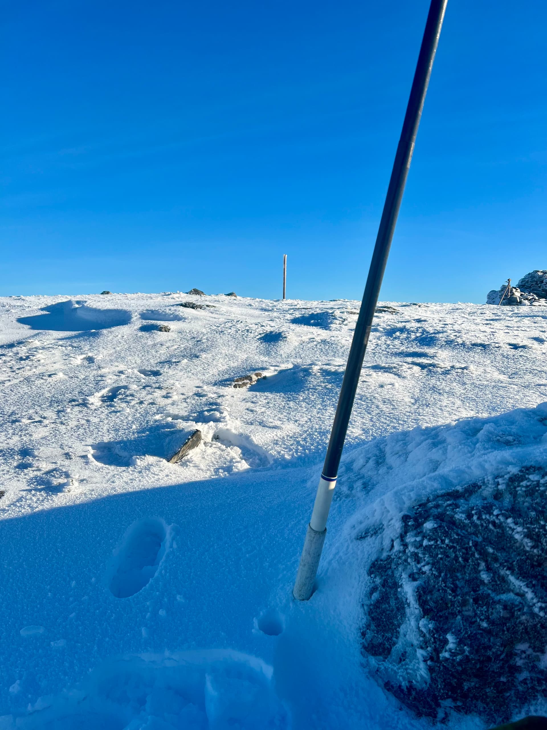We reached the top in about 1:40, and I will fail at articulating the surroundings and sights. Not only was it blue skies and sunshine, crisp snow underfoot, but there wasn’t a breath of wind. Perhaps -1°C air temp but you couldn’t feel it.