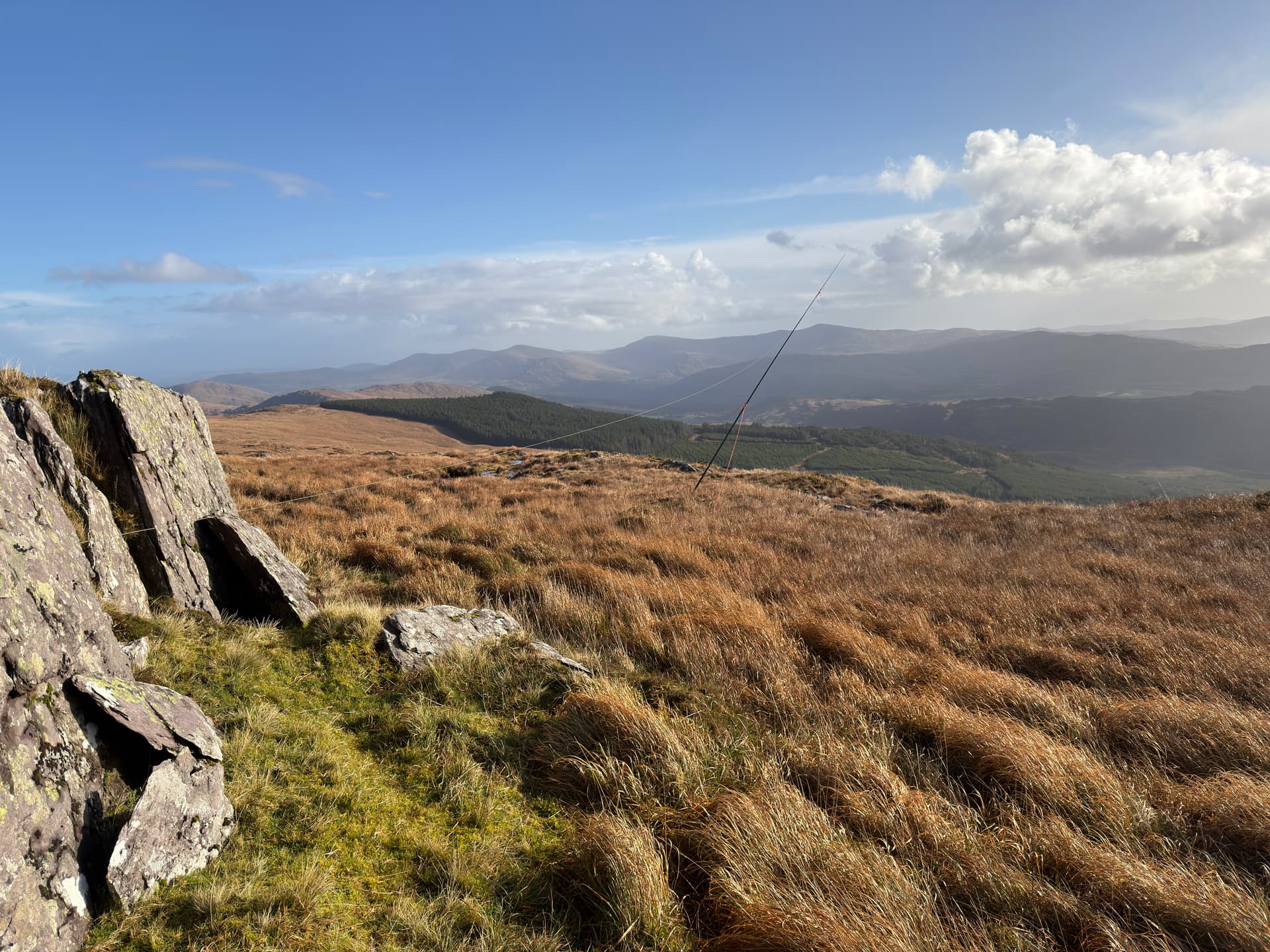 My GSM singal was strong. As for the surface, there was only yellow grass and sparse outcrop. I put the antenna up, found myself a spot to sit, and started the radio work. Most of the time I was bathing in sun except for a momentary hailstorm (sic!) which went as fast as it came. Now, while the weather conditions were amazing, the band ones were not. I sat there for 2 hours or so, and had barely made 3 QSOs before I ran out of battery in my KX2. I felt miserable because I thought I hadn’t been successful activating the mountain before John EI3KA reminded me via WhatsApp that activation had actually been successful, and that 4 QSOs are needed to score points, not to activate. I had forgotten about that rule, and his message cheered me up a lot!