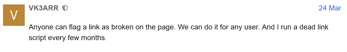 I don’t think that this script is running every few months!? Here in OE/OO region we have a lot of broken links on the summit pages. From time to time I check some of the entries but a script checking all entries for broken links would be great …