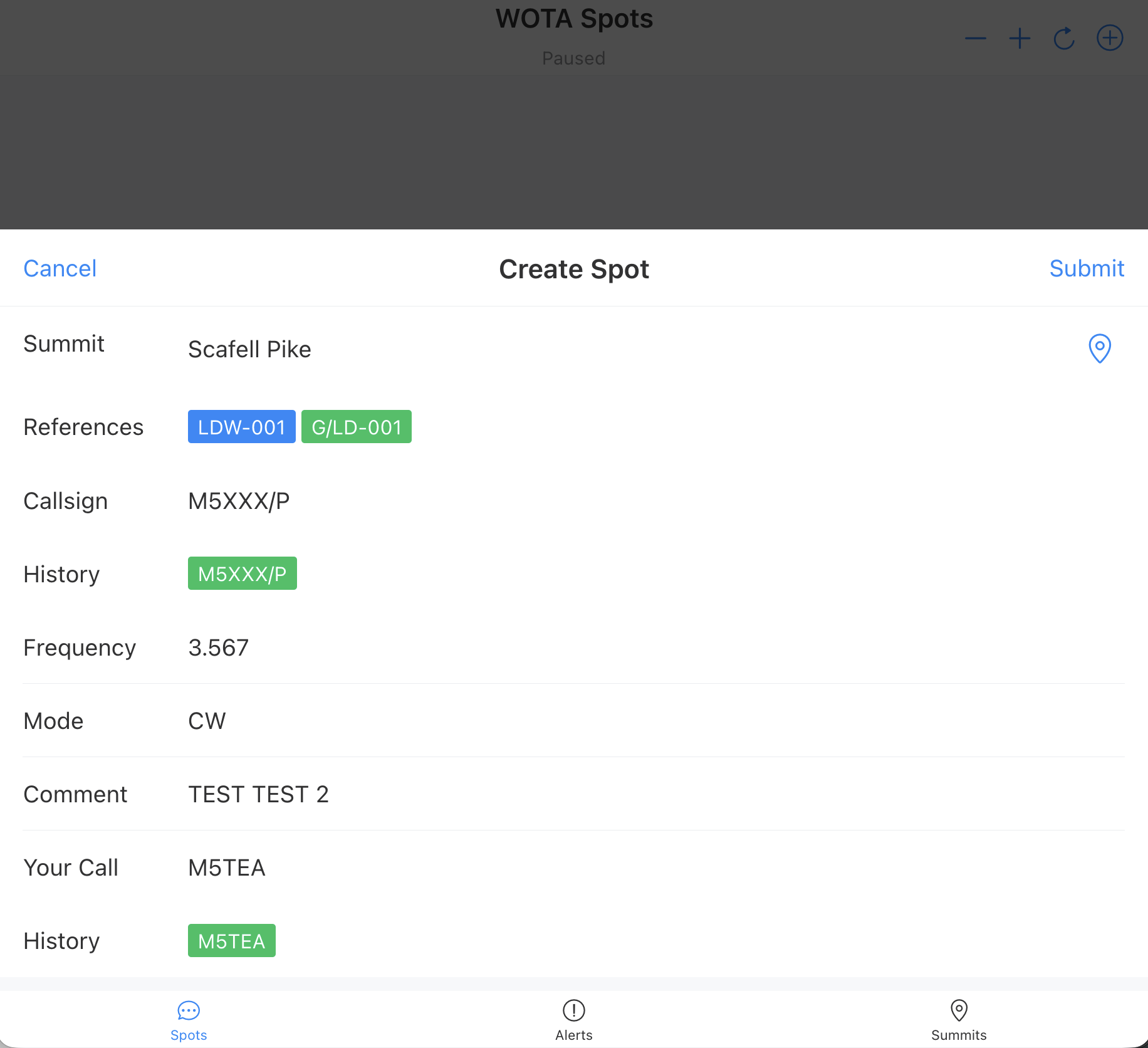 There is also now a dedicated WOTA spotter application that makes it super-easy to add a spot when on a Wainwright. We continue to support pull-through of SOTA summit spots and alerts that are also Wainwrights.