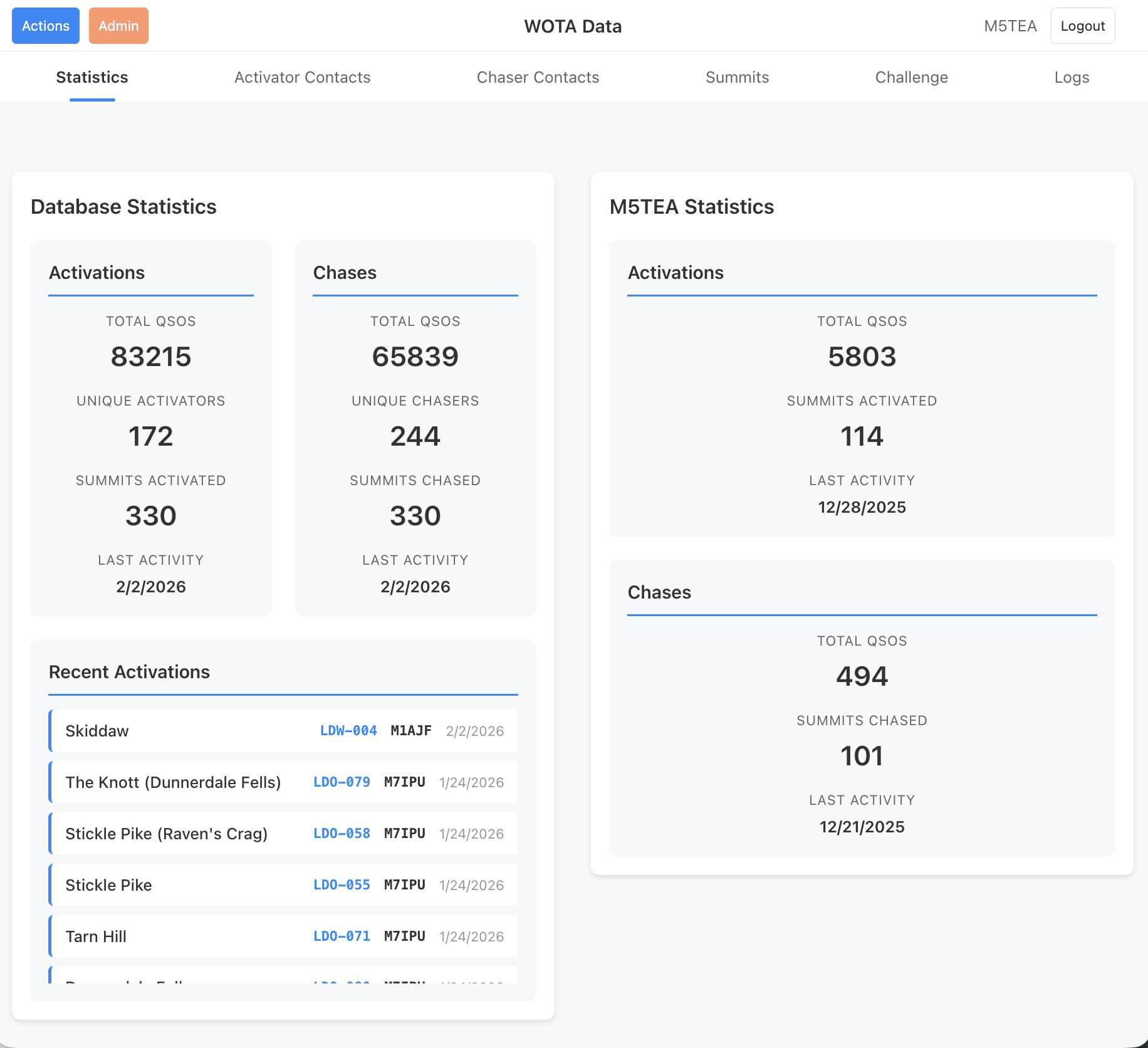 We’ve been working hard to make it easier for activators and chasers. The new WOTA Data application supports uploading of files in both ADIF and SOTA CSV format.