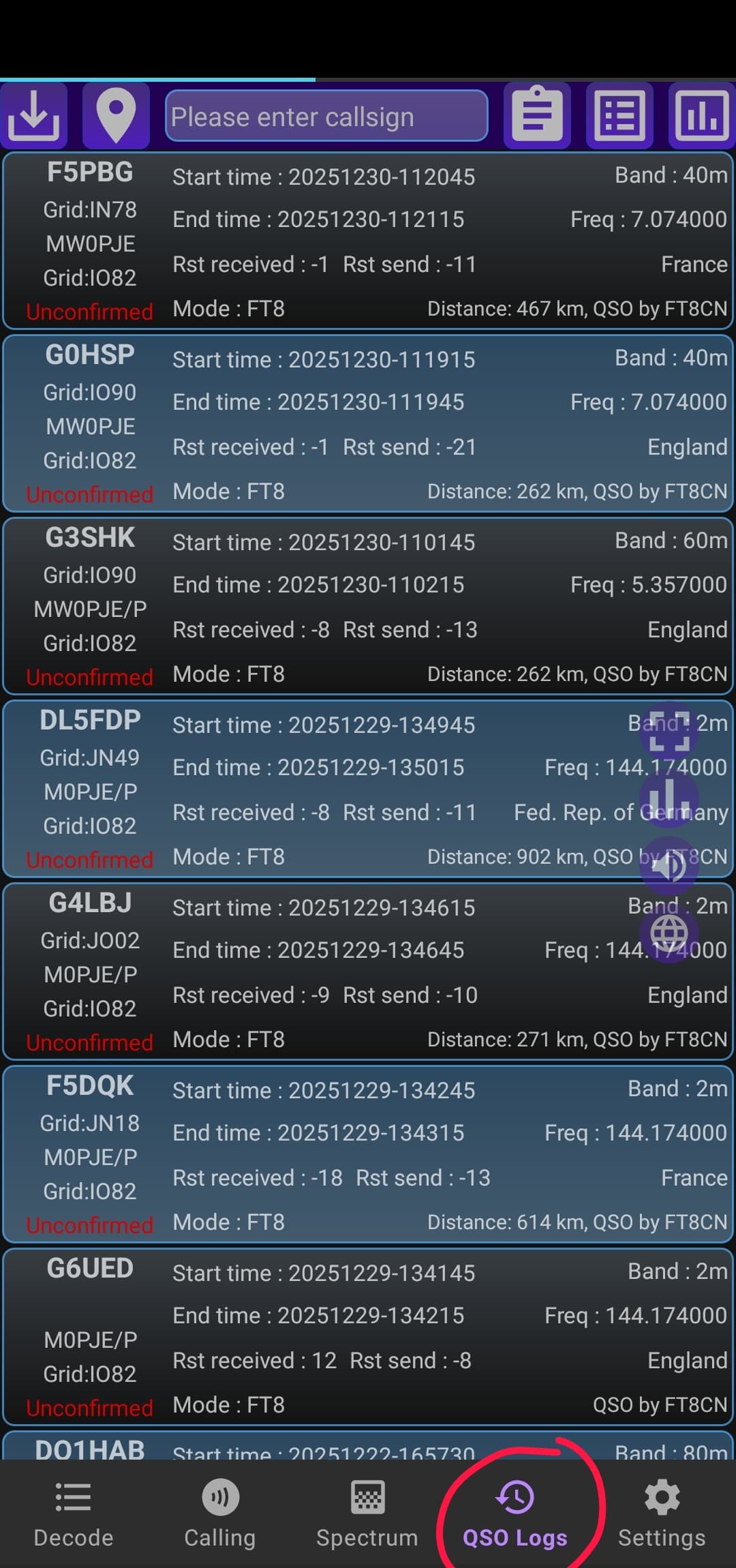 There are two, FT8CN and FT8TW on Android (possibly more, I’m unsure). It seems to work with my QMX but I don’t fully understand how to use it yet e.g. I think I’ve made a QSO but can’t be 100% certain hence to date I’ve made no confirmed FT8 contacts yet.
