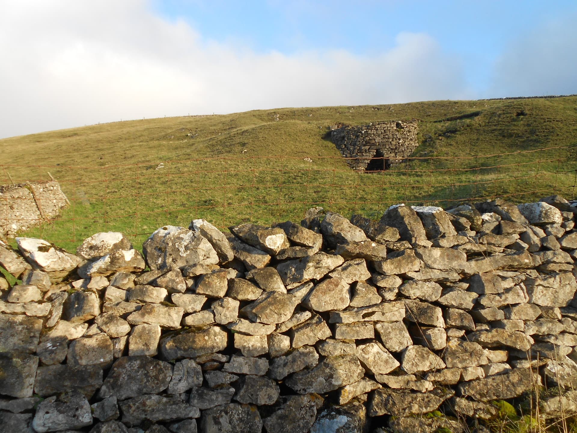 After putting on an alert, I left the hotel in Gargrave at around 09:15 for the 38 minute drive, stopping to get some photos of Kilnsea Crag with the sun on it, after which I noticed that the clag was down on both Great Whernside and Buckden Pike. Perhaps it would lift but if it didn’t, this was going to be a cold couple of hours with no views.
