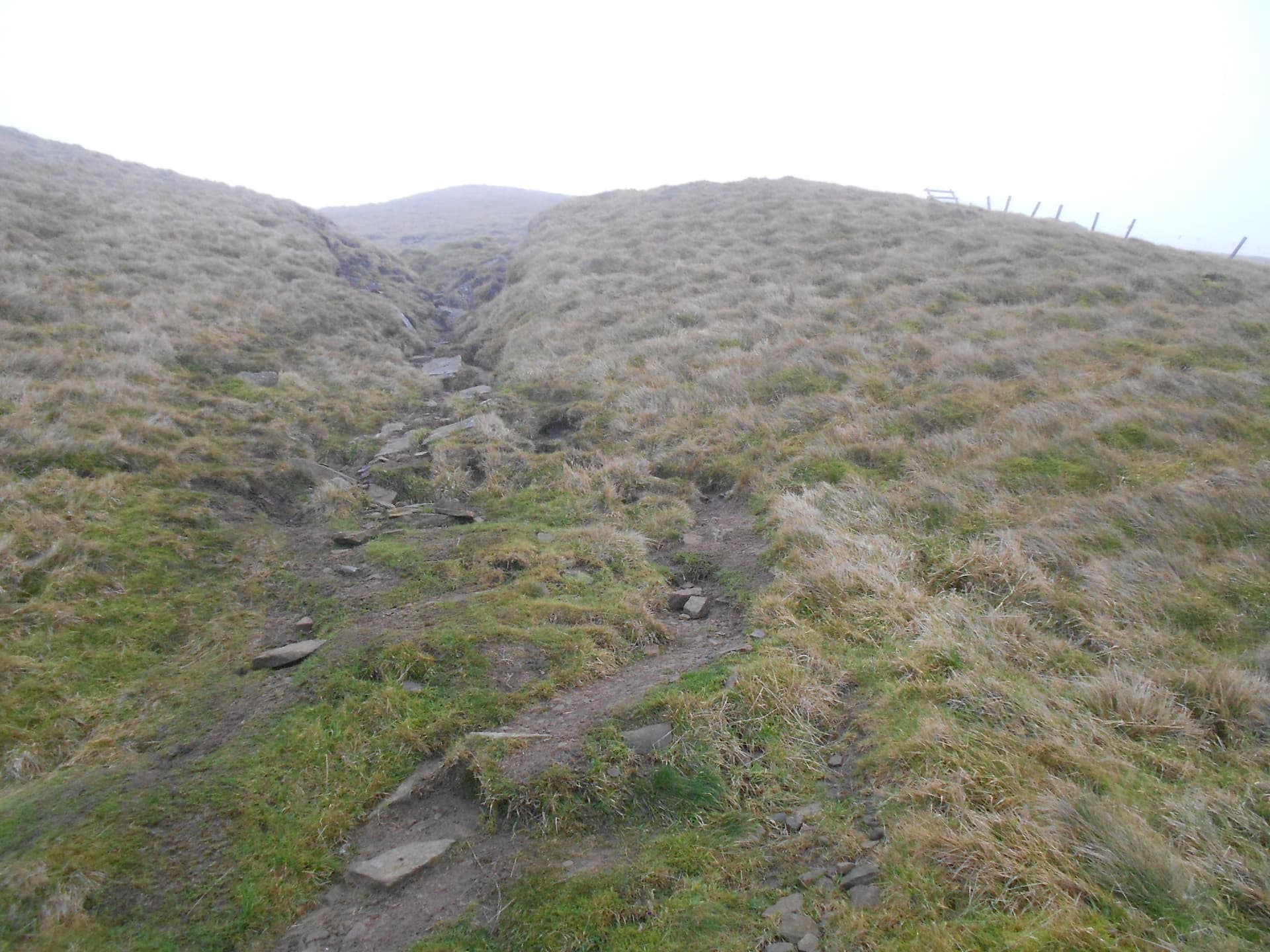 Above: Approaching the boggy section which can be seen further up the hill