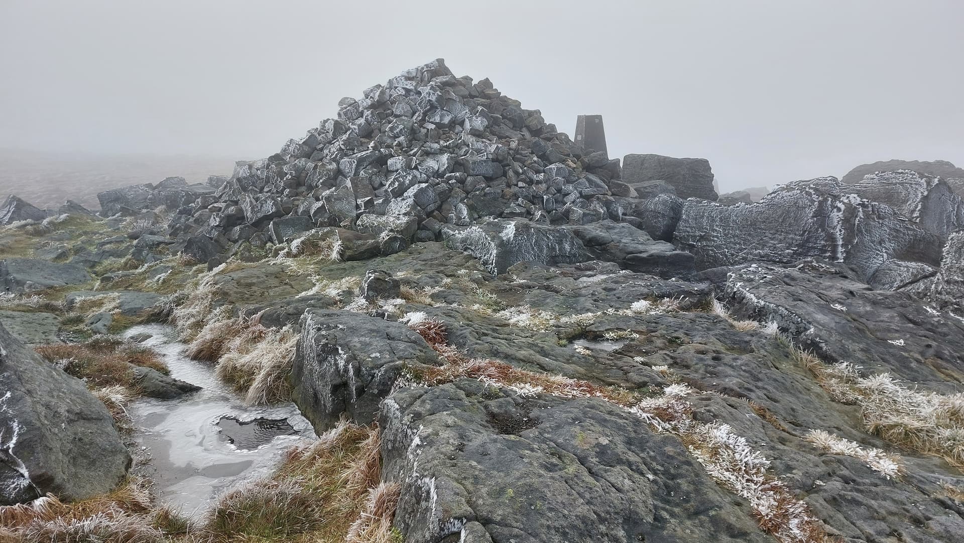 GREAT WHERNSIDE, G/NP-008, 704m (2,310ft) 6 pts. 11:22 to 14:05. Temp: 0C Wind: East 25 mph. Low-cloud throughout. WAB: SE07. LOC: IO94AD. Trig: TP-0703. Vodafone coverage - 4G.
