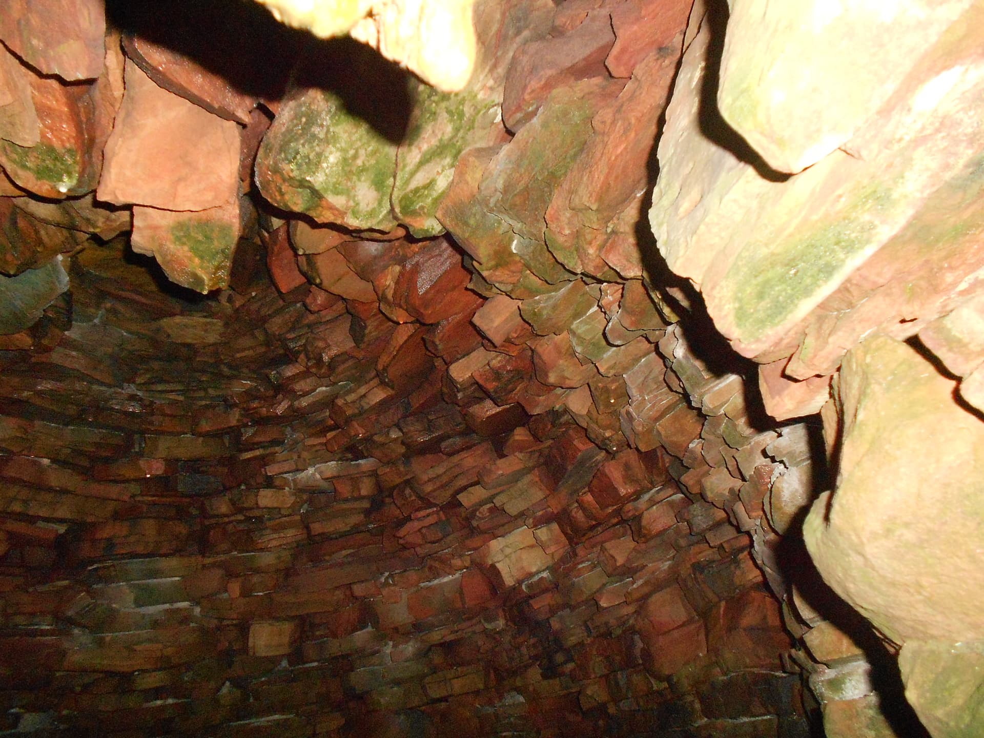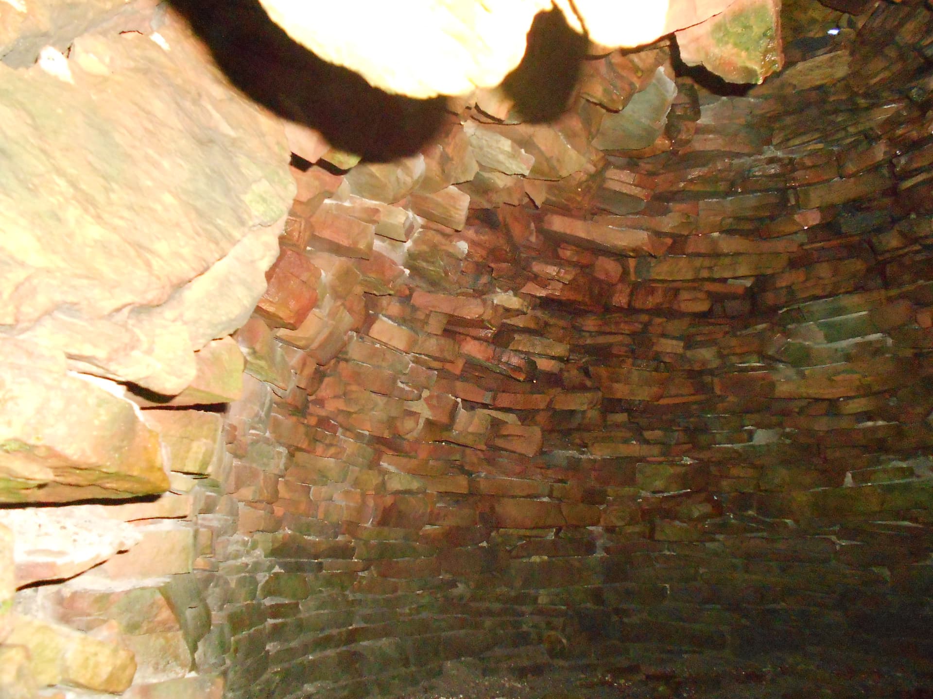 I’m pleased to say it worked out but GPS marking and photography slowed progress on the final section going SW to the cairn. I also stopped to have a good look at the coke oven which is in good condition and well built. If anyone was hard pushed in foul weather, they could crawl in there for the night and survive. On the way back, rather than crawl in myself, I stuck the camera inside to see what it looked like.