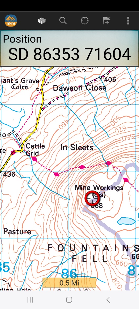 Above: QTH on 50k map & grid ref. Start point is cattle grid