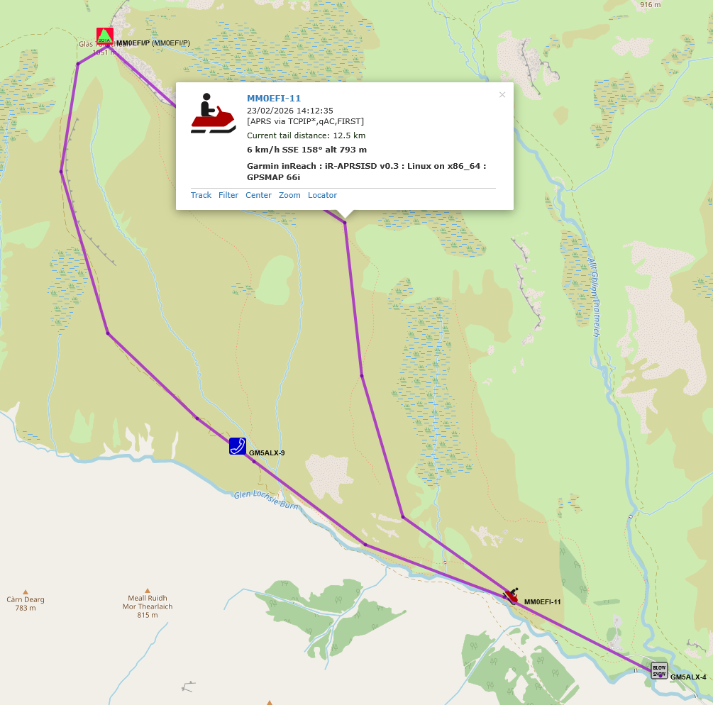 By default it polls the Garmin share every 5 mins but you also set your Garmin reporting frequency on your device. A 2m/70cm LoRa tracker will give you much more detail but sometimes you don’t always have igate coverage. Plus if you’re running the Garmin tracking anyway, why not report to APRS.