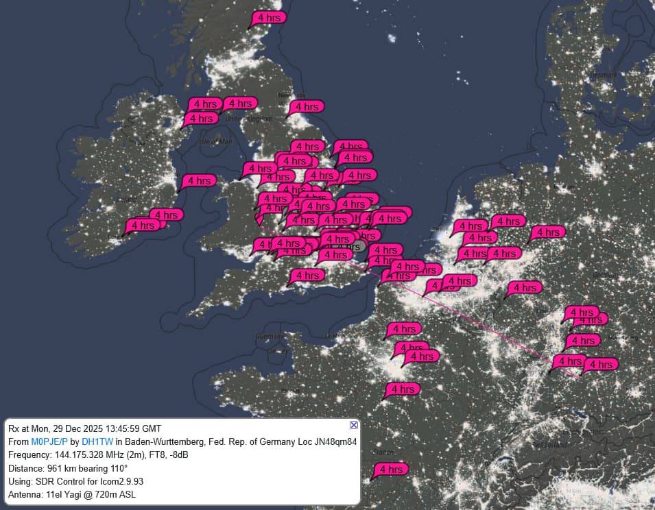 Furthest contact on 2m FT8 877 km away (although I was heard even further away than that) which isn’t bad for 5W!