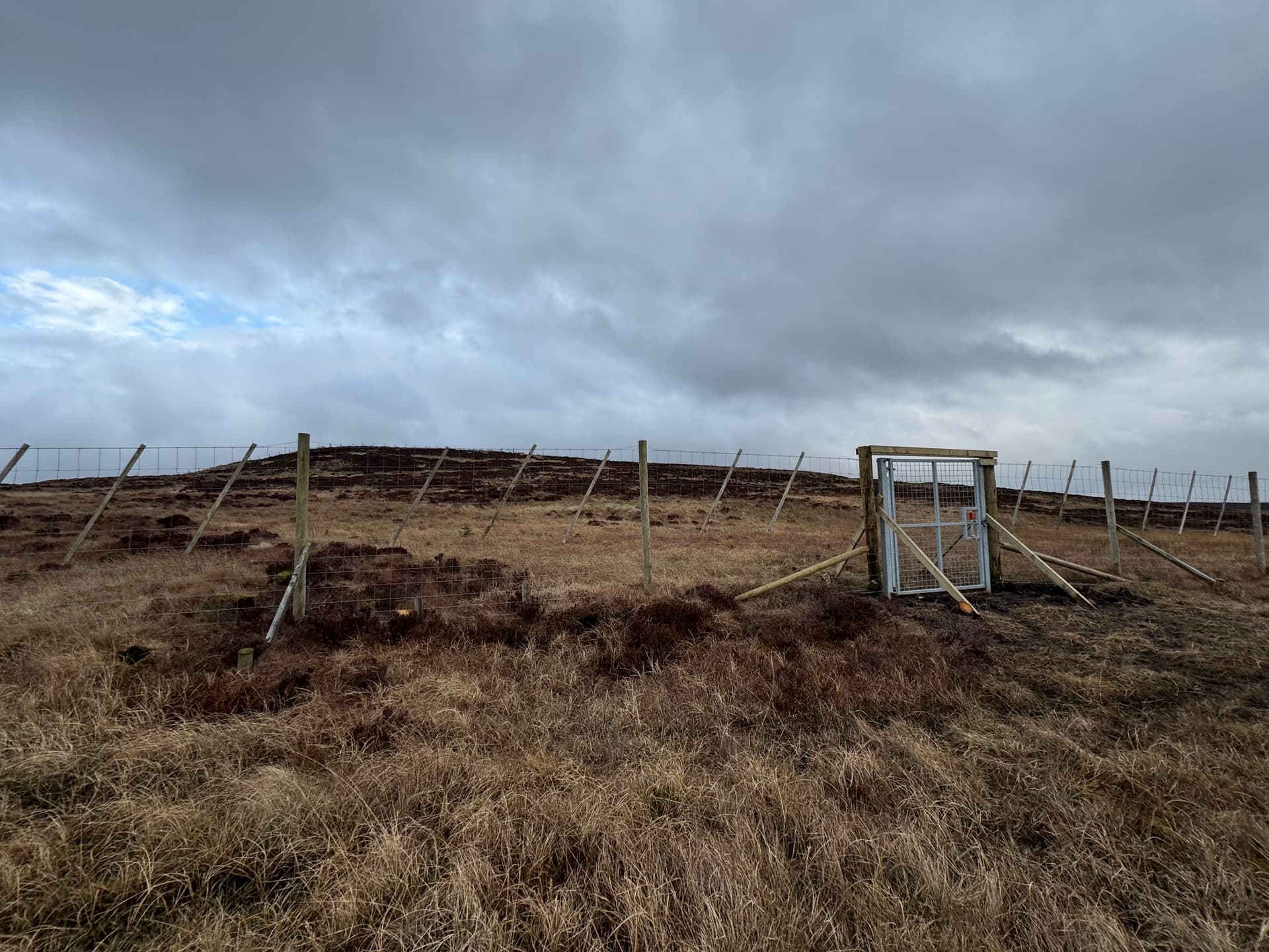 On reaching the termination of the track, you’re just short of the 350m contour at NS 273 871, so you’d be well within the activation zone based on the summit height of 361m, but if like me, it doesn’t feel like you’ve completed it til you’ve visited the summit itself, your next move is to take a hard right. While the summit is tantalisingly visible, there’s also a pretty solid deer fence in the way too, so you’ll need to head towards the gap between the rise to the right and the summit here, where there’s a gate through the deer fence (and another gate in a smaller fence just before the summit. Passing across this area is soft, boggy, and there are a number of bonus tree-planting drainage holes (not sure what the technical term for these is) to catch you out should you stop thinking about your footing for a minute. There are a couple of quad-bike scrapes that can be followed, but they don’t tend to be much easier or last very long.
