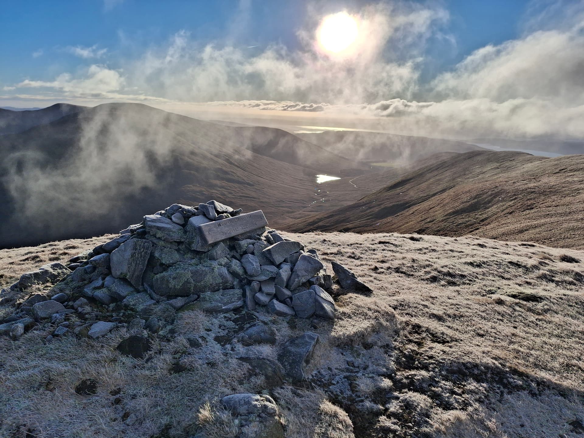 Once a wee bit higher up, there’s a choice of two routes up onto the summit plateau - I opted for the more direct route straight up, a wee grassy scrape that’s just about visible to the right hand side from the main track. It was a steep wee pull up, and just as I was starting to get a sense of nearing the top, my radio sparked into life, and I picked up a bit of Iain @MM3WJZ S2S on nearby Beinn a’ Mhanaich (GM/SS-066) at around 11:30. I was still a wee bit breathless from the pull up to the plateau as I initially made the QSO, but Iain was kind enough to give me a wee minute til I could get sat down and make contact properly.