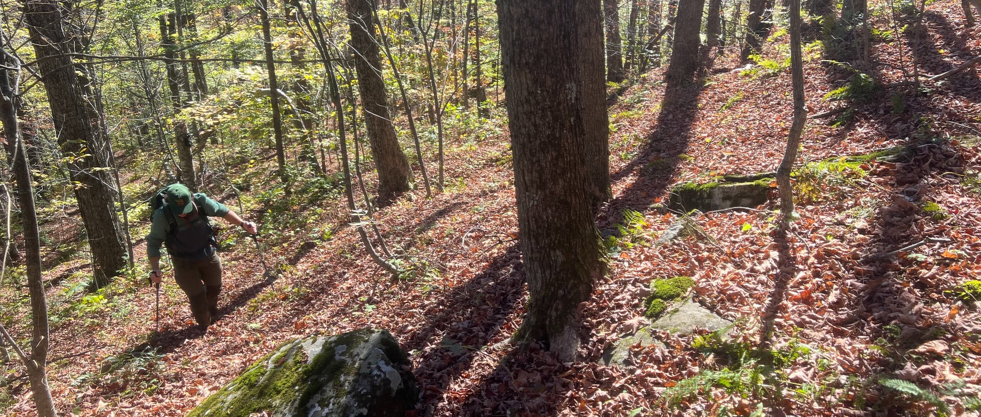 Halcott pronounced “Hawk-it” has no official trail, just a herd path up the mountain. But a fresh layer of autumn leaves erased the path, instantly turning the hike into a proper bushwhack.