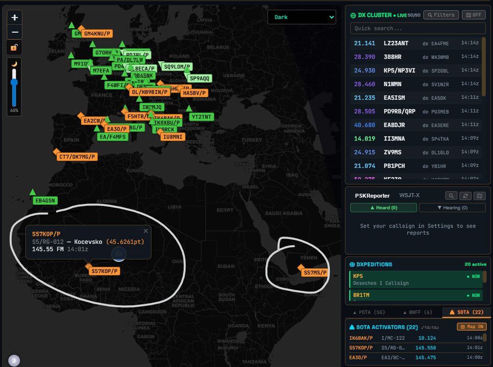Very nice. In the lower right, click POTA, then map off. Then click WWFF and map off. What remains is SOTA, and the targets can be clicked for six digit locator and lat/long. Among the map overlay settings, “political” is good. Click on a map open space, and the round blue “DX” moves to that spot, allowing target info to appear in the left panel.