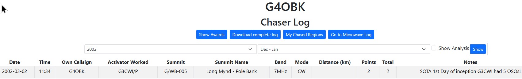 All this computer stuff was brand new to me even Wayne taught me how to do a spread sheet to get the list on the computer in the first place. Any how Jim sorted it for me and vk5 went live on 1/10/2012 and I was sitting on my first SOTA summit waiting for the UTC clock to roll over to that day. In the mean time I had also learnt how to put Spots from my phone to SW2 and rounded up a few of my local friends to chase me as not many folks knew about SOTA either at that time.