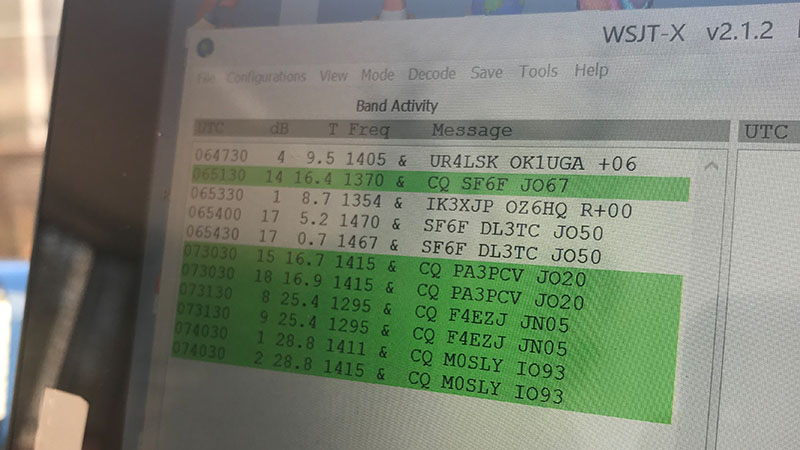 Yesterday I set up my SOTA station on the balcony to make some MSK144 tests on 144MHz. Quite successful however I didn’t make any QSO. That wasn’t my intention anyway since I have been struggling with MSK for a while and now got the problems sorted out. With a small setup and located in a valley in JO50, DL, OK, I, F, G, OZ, SP, and PA MS signals were successfully decoded.
