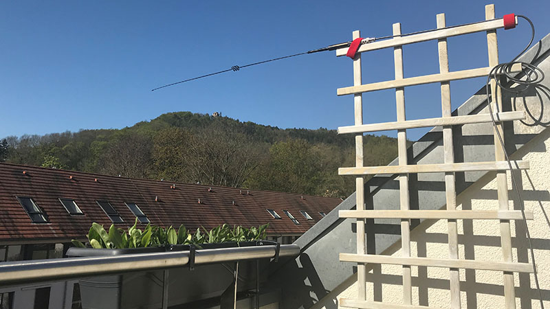 I’m sorry to say that my HF setup at my JO50 QTH does not comply with the HbOTA rules. It is indeed SOTA style with a wire attached to a glass fibre pole, but this is a permanent setup. Whenever I’m here, I just pull out the pole on the balcony, get me a beer, sit down in the shack and let the remote ATU at the feedpoint do its work.
