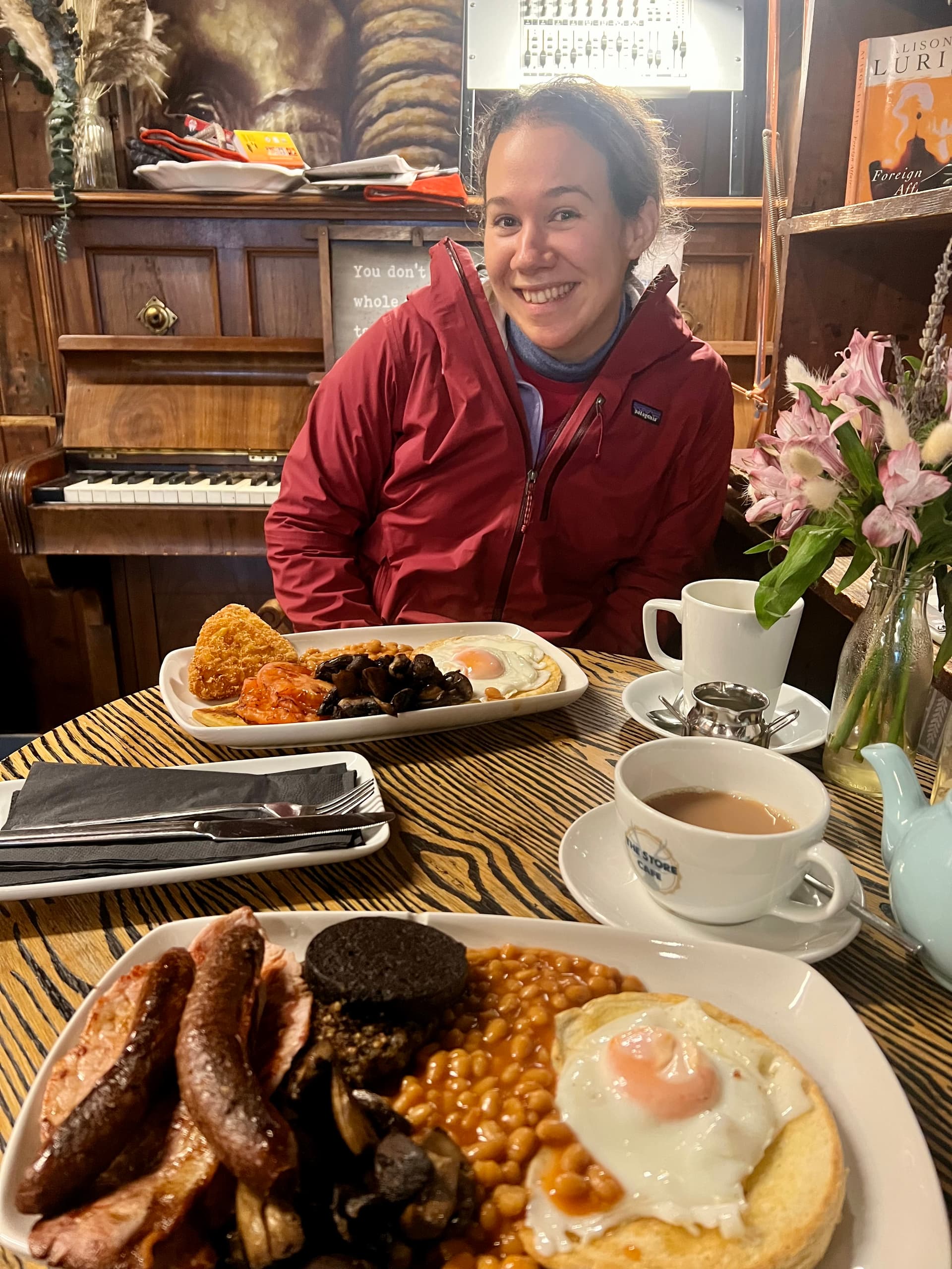 The wind whilstled and rattled everything all through the night (although apparently that was normal), and the forecast for today’s trip to Ben Hope, GM/NS-020, was sun, cloud, snow and 80 mph winds. Although the visibility was meant to be excellent. The ferrys to Orkney were cancelled due to the sea state, and the waves were huge as we drove to The Store Bistro in Bettyhill for breakfast. Would it be a good idea? We were going that way anyway, and as the wind was from the north and you climb from the south, I was hopeful we’d be sheltered on the way up.