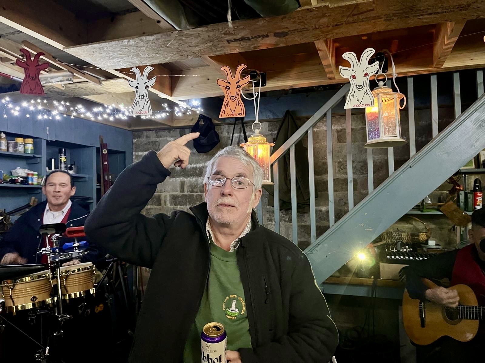 Meanwhile, Denis’ @MW0CBC, partner had organised a little Mountain Goat celebration whilst in GM/ES and I’d promised to call in on my way home. I wasn’t sure what to expect as I pulled into the grounds of a listed house, and two ladies then usher me out of the car and lead me through the darkness to the kitchen, whilst asking me questions, describing the food, and listing all the people who were here, for us to then turn around and head back towards the art studio where the party is being held. I’m soon pointed towards the familiar faces of other amateurs, whilst others bring me food and drink under the instructions of the two ladies.