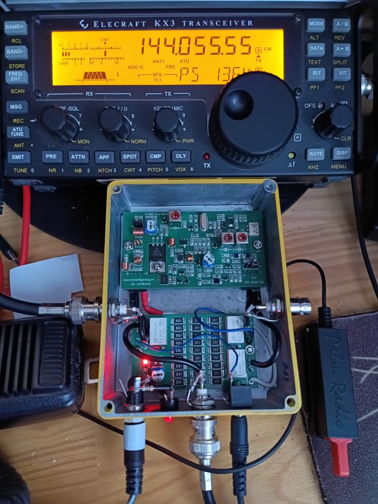 I’ve hooked it up the the 5-element 2 metre yagi I have put up in place of the old white stick (which needs serious maintenance (or maybe the bin?)