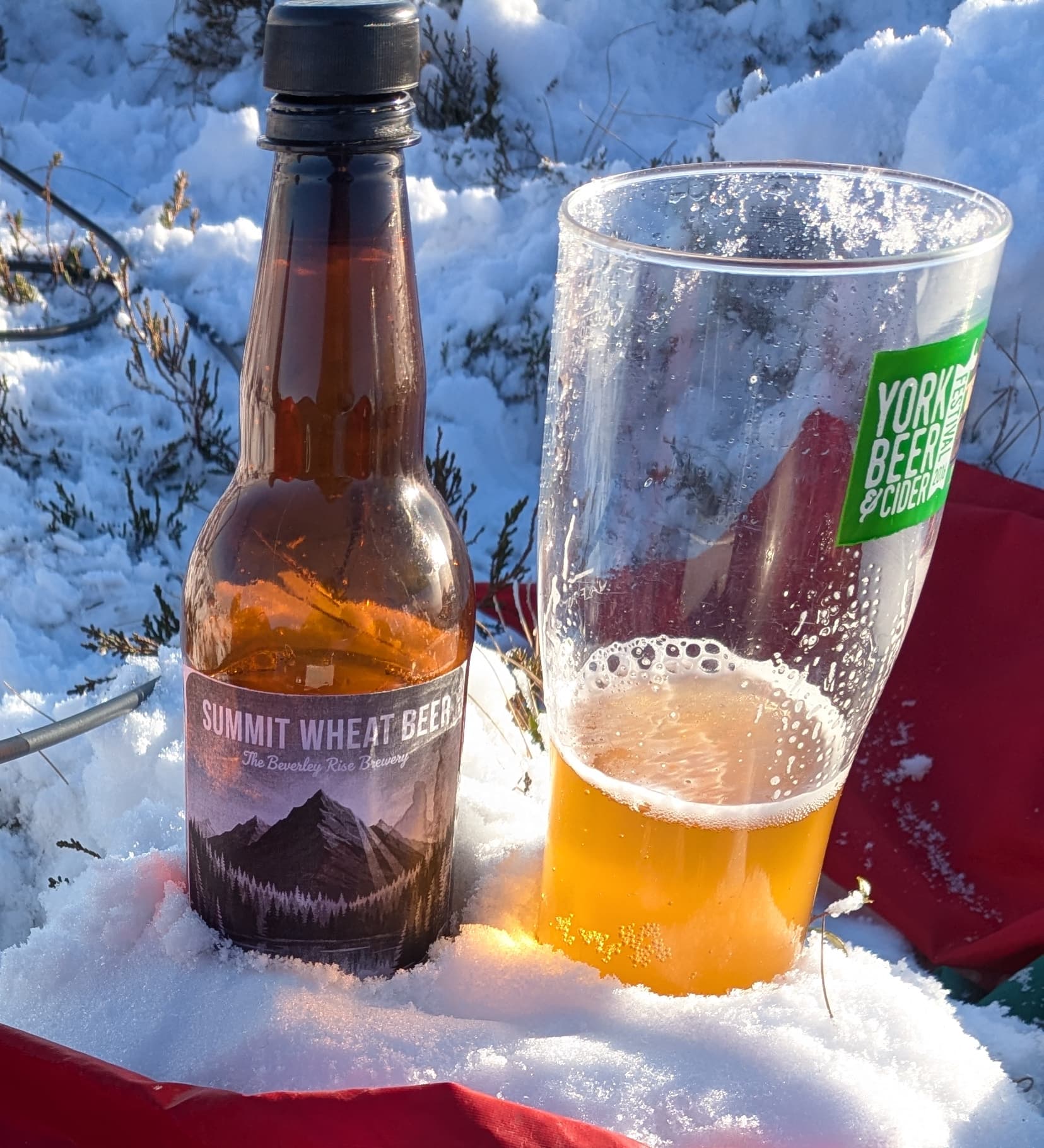 The beer is a German style wheat beer with American Summit hops (how could I use any other hops?). It was certainly cold in the snow!