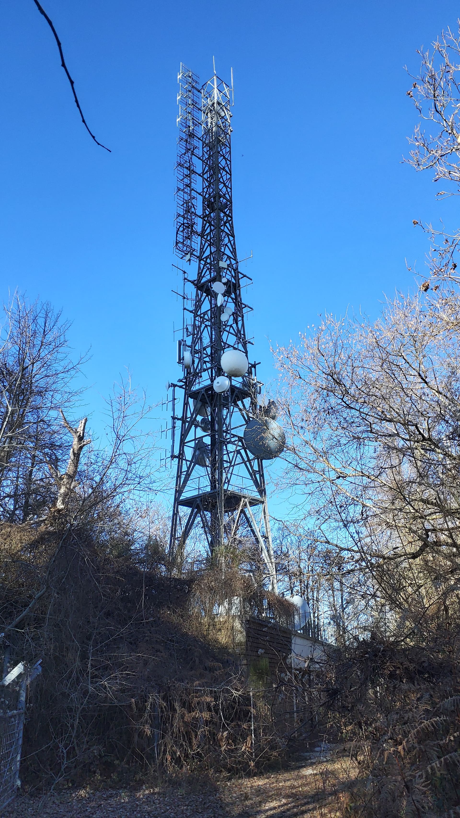 There is good cellular internet coverage on the summit. Site noisy from RF, due to the many repeaters present.
