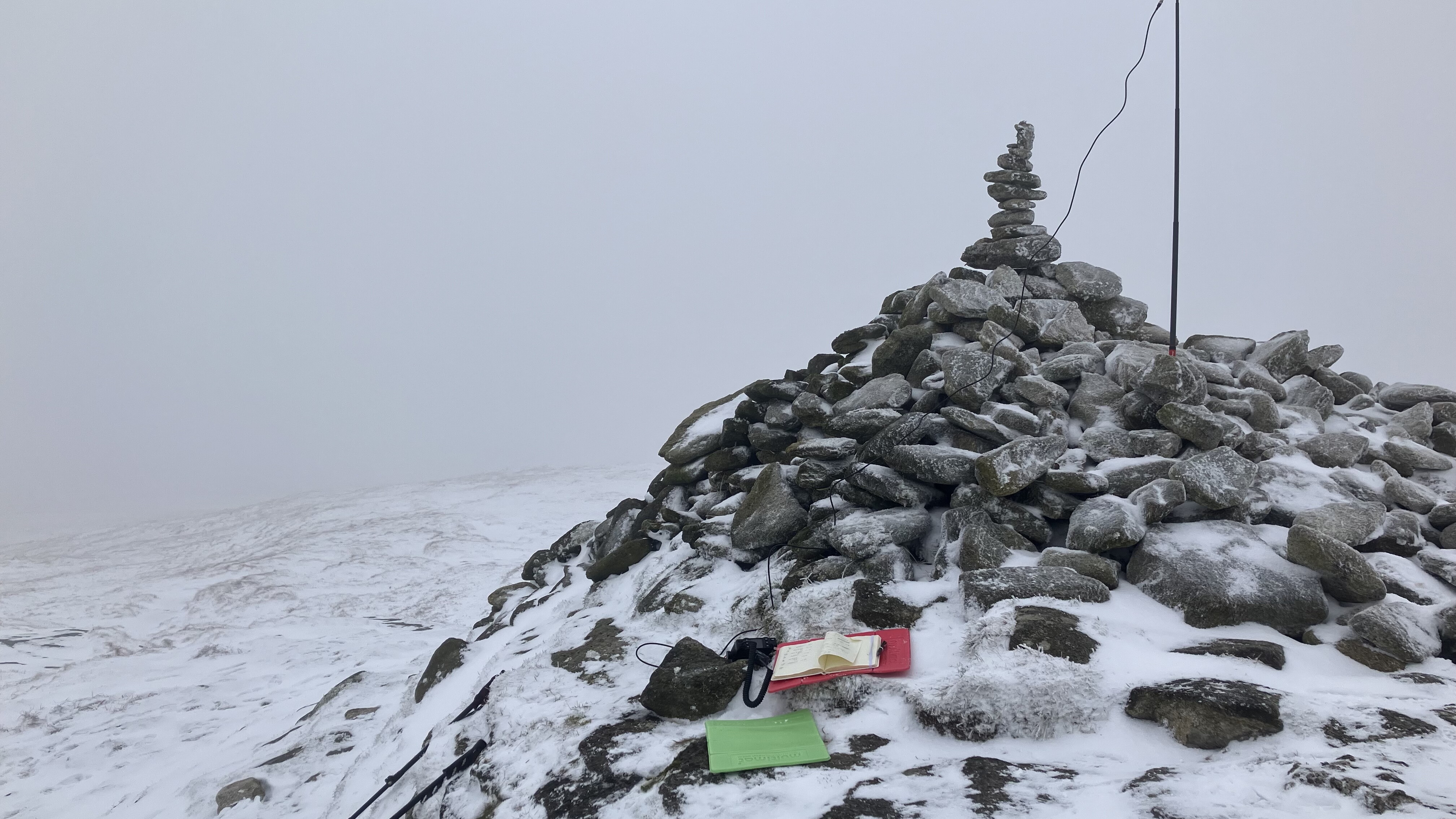 It’s only 1.3 miles to the summit, during which I experienced ice cream head again! I got to the top and found some shelter only about 10-15m SW of the trig point.